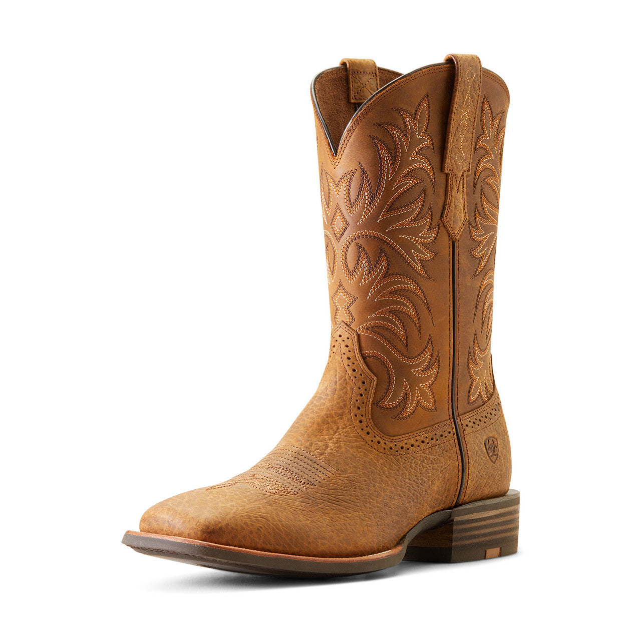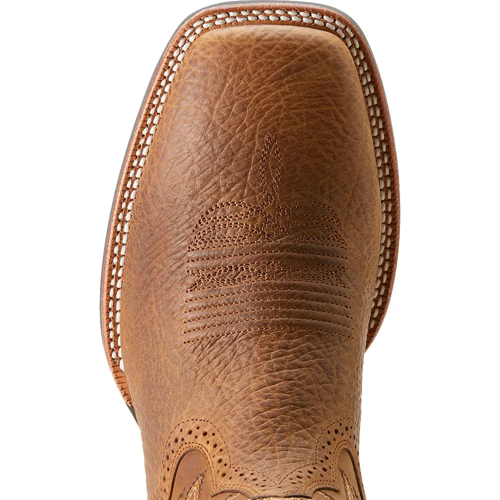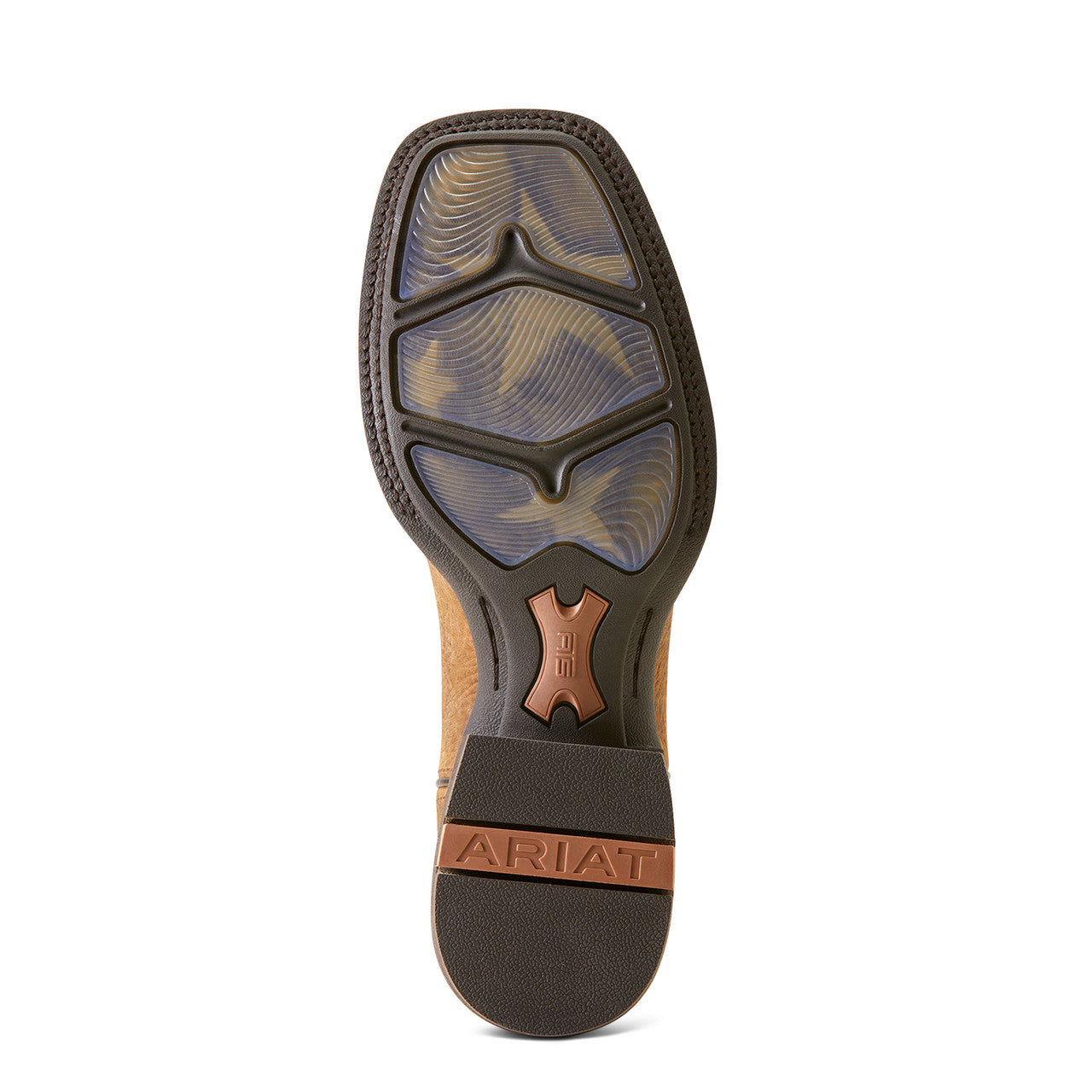 Bottes Ariat Oakwood pour hommes. Une semelle transparente ajoute une touche de plaisir à cette botte par ailleurs classique. Avec un bout carré large et spacieux et un motif de couture traditionnel le long de la tige de 11", l'Oakwood est une paire polyvalente que vous pouvez porter au rodéo ou en ville.