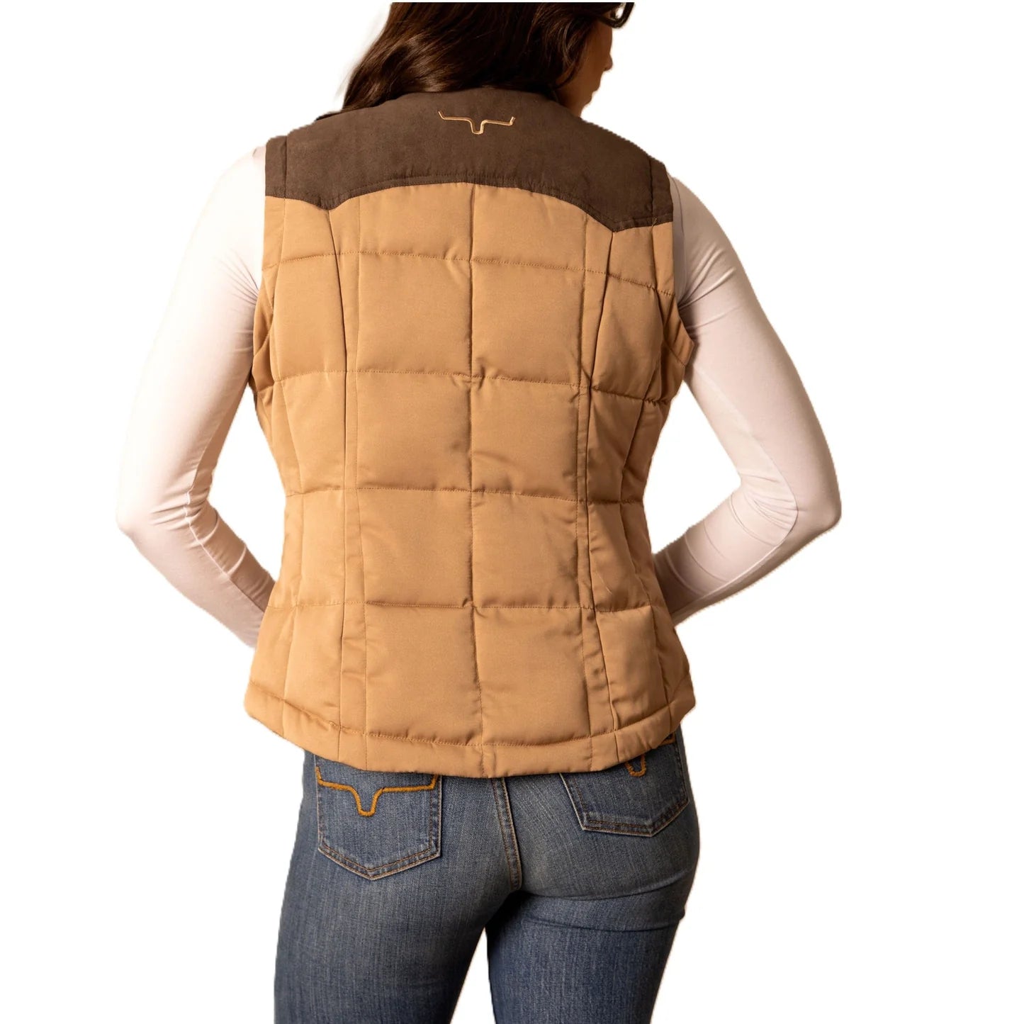 Veste Kimes Ranch Lenora pour femme. Ajoutez chaleur et style à votre look extérieur grâce à son color-block unique et à son col et empiècement en daim marron.