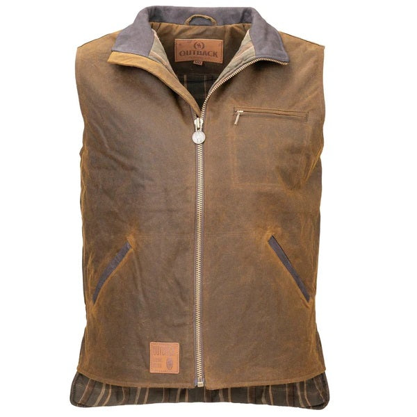 Veste Outback Sawbuck pour hommes en coton huilé. Imperméable et respirant. Parfait pour les journées fraîches d'automne ou de printemps. Couleur Brun.