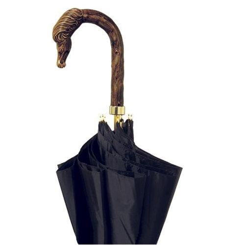 Parapluie Cavallo, poignée de fabrication artisanale italienne montée sur un cadre à ouverture automatique 25 X 8 avec gaine pour le rangement.