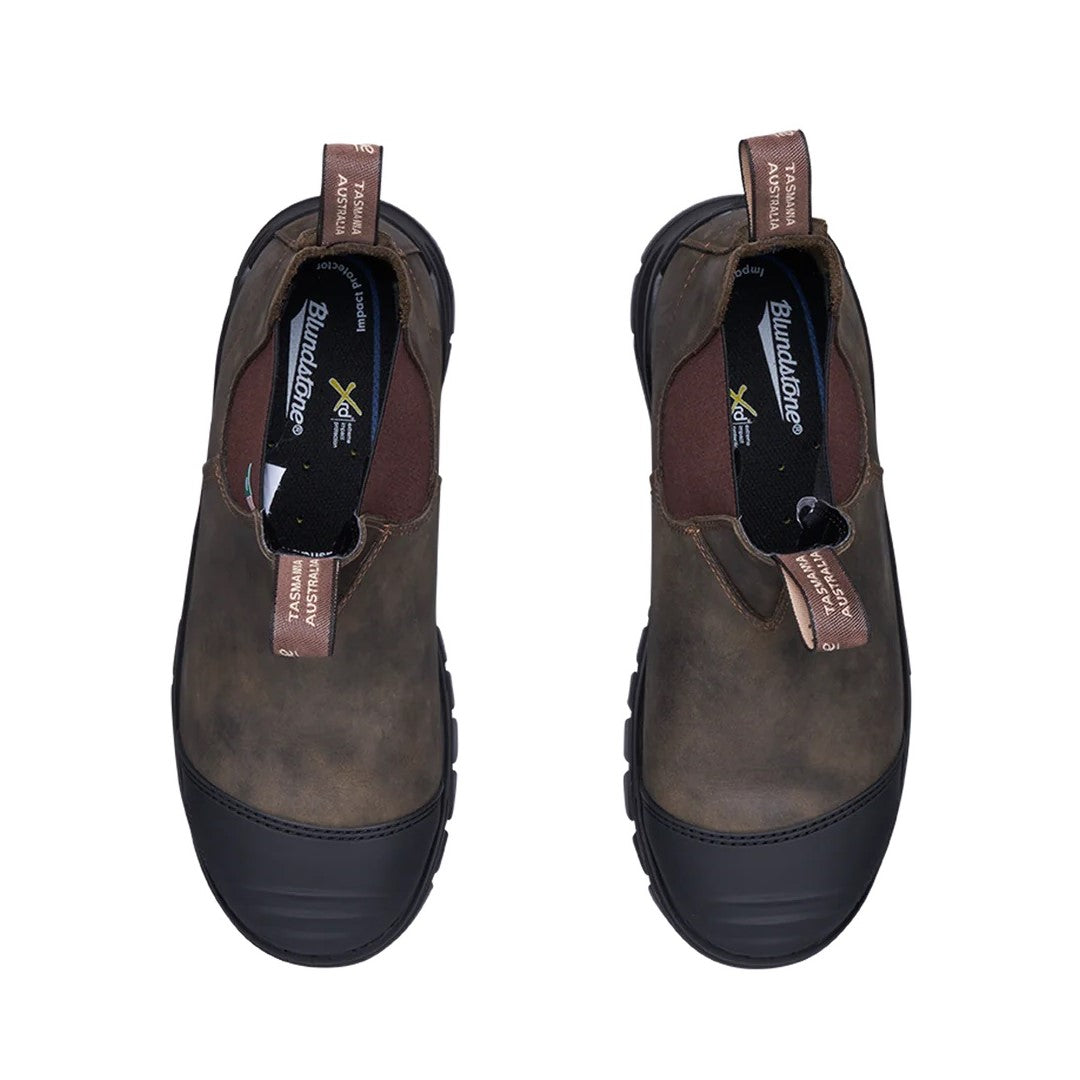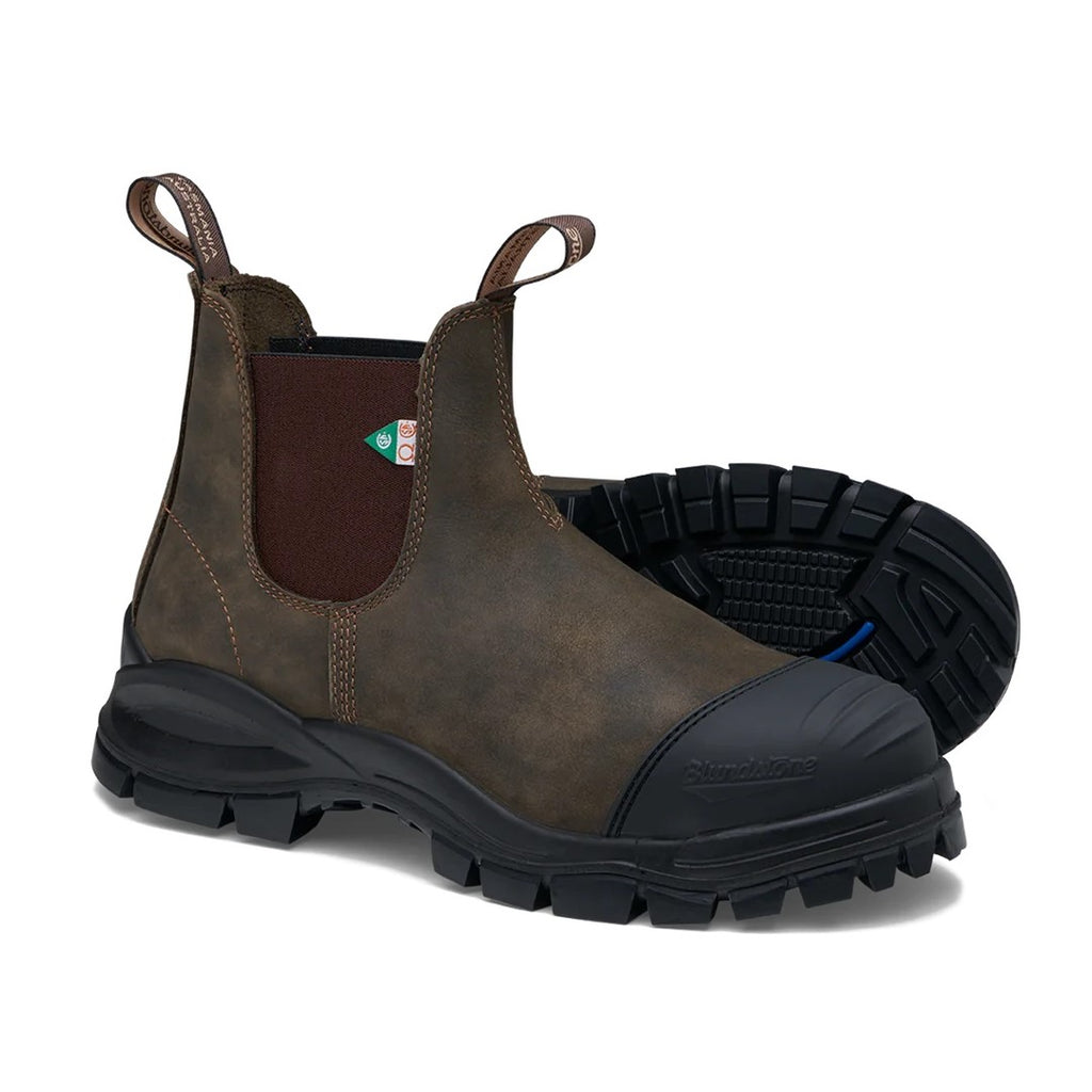 Bottes de travail Blundstone modèle 962 pour hommes. Avec la point du pied en acier Blundstone. Ces bottes vous offrent sécurité, confort et pied au sec toute la journée.  Légères et durables avec une semelle résistante aux dangers électriques, chimiques et acides. Approuvé CSA Grade 1.