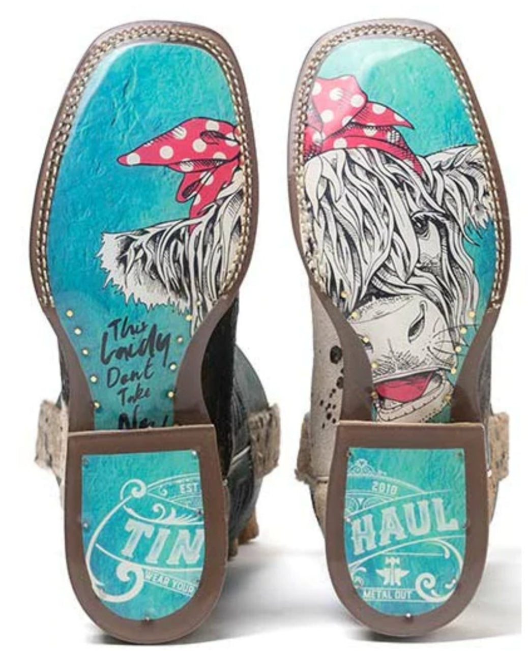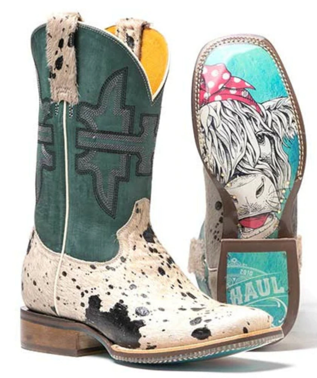 Tige en cuir huilé turquoise d'une hauteur de 11”