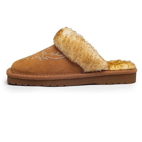 Pantoufles Ariat Jackie pour femmes. Ces chaussons doux à bout carré donnent un look western tout en étant décontractés et confortables.