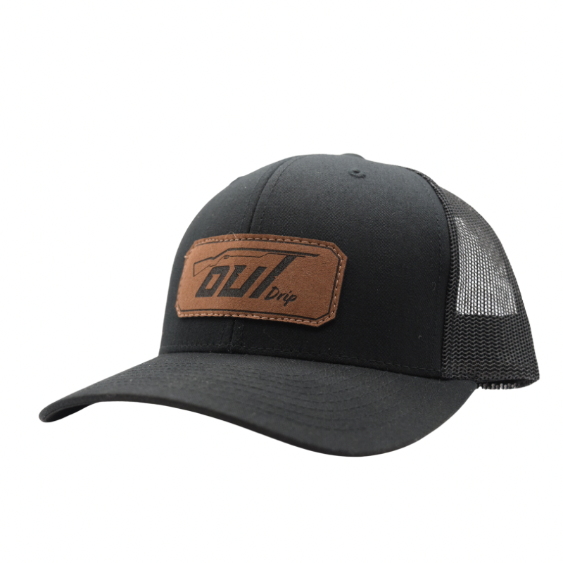 Casquette OG de Outdrip. Grandeur unique. Noir avec patch brune foncé.