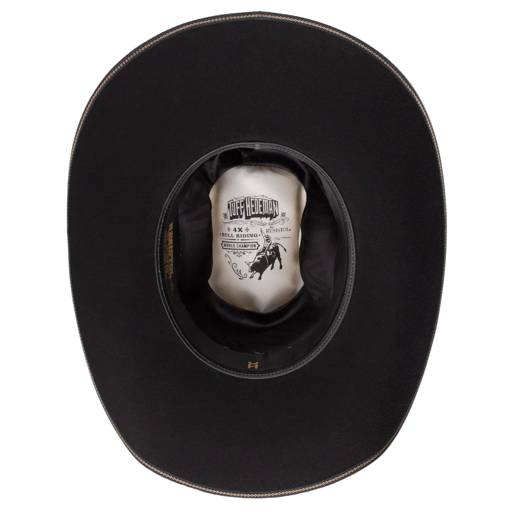 Audacieux, affirmé et résolument tendance, le chapeau Snake Eyes 4X noir dégage une énergie incroyable. Issu de la collection Tuff Hedeman de Resistol, ce chapeau en feutre 4X possède une couronne brique de 4 1/4", un bord de 4 1/4" et un bandeau anti-transpiration en cuir. Un bord ourlé, un bandeau de chapeau en tissu contrastant orné d'une épingle Resistol et une plume ajoutent une touche d'élégance supplémentaire.