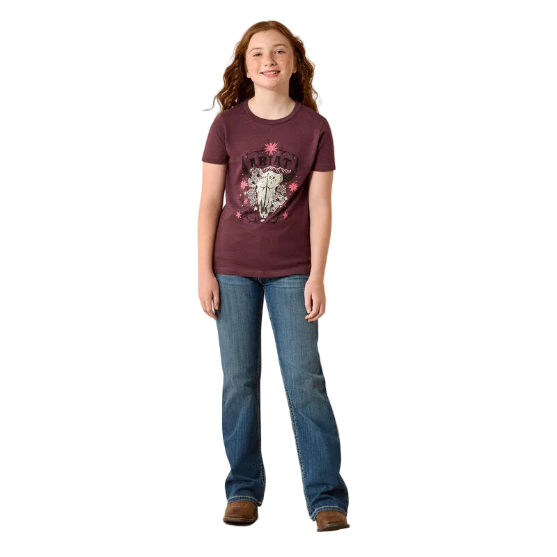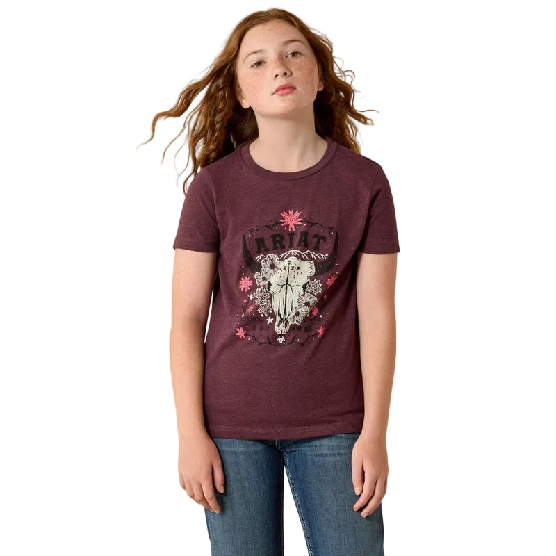 Chandail Ariat Skulls Florals pour enfants. Ce t-shirt facile à porter au quotidien lui assurera un confort optimal en toutes circonstances. Son motif original apporte une touche western à toutes ses tenues.