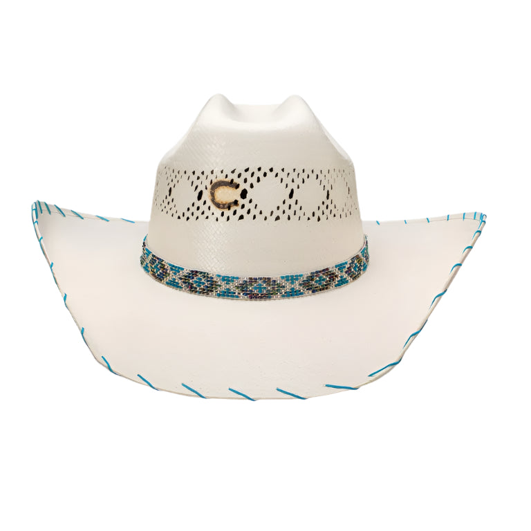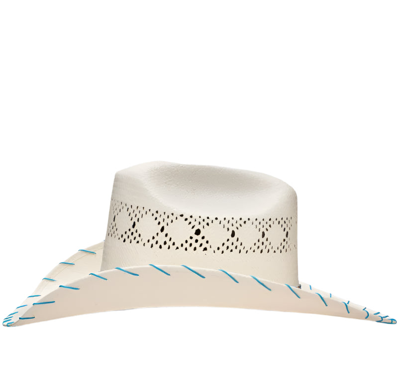 Issu de la collection Charlie 1 Horse pour enfants, le chapeau Apache Jr. incarne l'esprit libre. Ce chapeau en paille shantung est orné de surpiqûres bleu vif apportent charme et contraste au bord. Des fentes d'aération classiques et un logo Charlie 1 Horse décentré et rouille complètent le look. Un bandeau élastique extensible lui permet de rester bien en place.