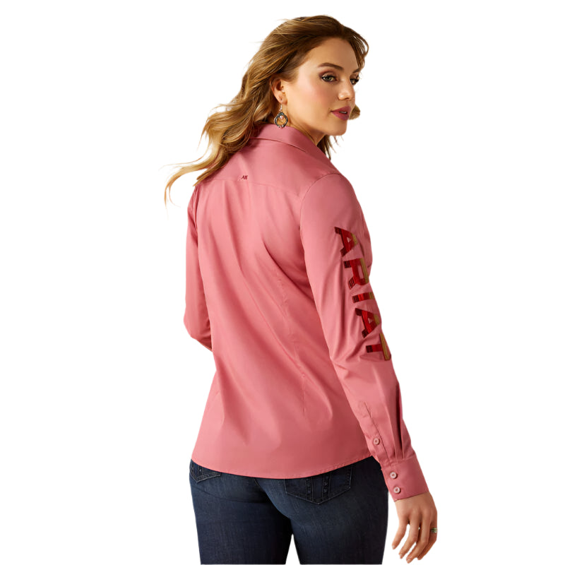Chemise Ariat Team Kirby pour femmes. La chemise la plus populaire d'Ariat a maintenant une nouvelle coupe avec encore plus d'espace de mouvement. Doté du logo emblématique Team Ariat le long de la manche, cette chemise fait bien à tout le monde!