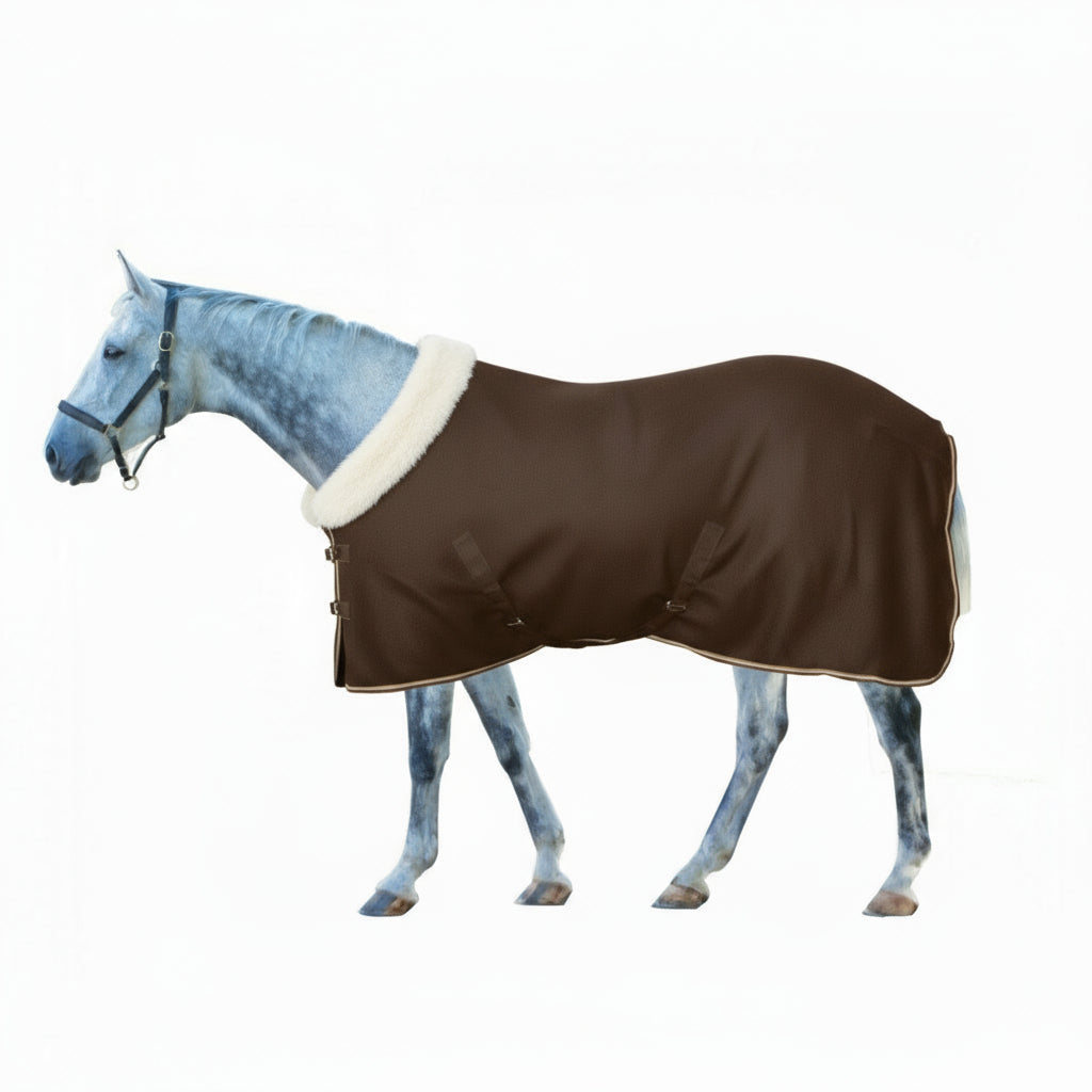 La couverture polaire Century  Super Lux offre chaleur, douceur et style exceptionnels. Fabriquée en polaire anti-boulochage 250 g/m², elle offre une excellente isolation tout en conservant un look élégant. Le col rembourré en fourrure de vison ajoute un confort supplémentaire et une touche de luxe. Conçue pour plus de praticité, la double fermeture rapide sur le devant permet un ajustement facile grâce à un système de pression et de déblocage, ainsi qu'une fermeture auto-agrippante pour plus de sécurité. Les sursangles croisées au niveau du ventre assurent un maintien sûr, tandis que le lien à nouer maintient la couverture en place. Idéale pour se rafraîchir, superposer ou se détendre confortablement.