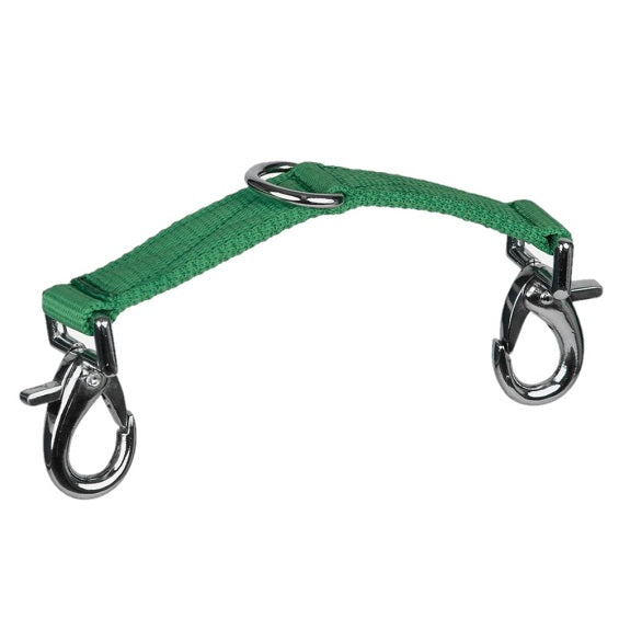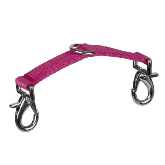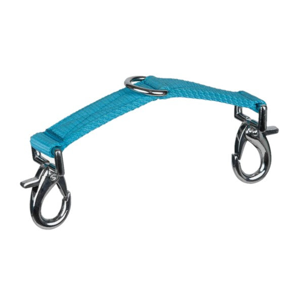 Alliance de longe en nylon. Elle dispose d''un anneau en D à chaque extrémité pour attacher la longe de travail. L''alliance de longe peut être fixée au mors ou licol par deux clips. Cette alliance permet de garder la même tension sur les deux côtés du mors et évite au mors de sortir de la bouche si le cheval tire vers l'extérieur.