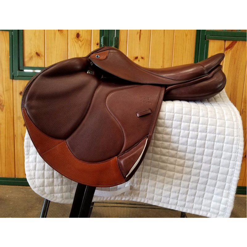 La selle de saut Mono Flap Zaria Optimum a été spécialement conçue pour les disciplines de saut d’obstacles. Cette selle de Stübben fournit le plus grand contact avec le cheval et offre un maximum de confort. La technologie de selle BIOMEX, soulage le dos en position assise et en mouvement. Les coussinets de cuisse intégrés et les blocs de mollet attachés offrent un soutien et une stabilité permettant une liberté de mouvement. Plus important encore, la selle aide le cheval à se développer et à rendre ses performances optimales ainsi que la gestion de la tension sur les parcours. Le panneau confort Multicouche est une combinaison d'un panneau de laine traditionnel et de matériaux en mousse innovants. Il crée une zone de support souple et uniforme, tandis que le rabat et le panneau de selle sont particulièrement flexibles. La coupe du panneau améliore la séquence de mouvement sur les sauts et le développement sans entrave de la puissance de galop. Ce modèle Stübben présente tous les avantages d'une selle mono Flap, par la réduction de poids, un contact optimal avec le cheval et améliore l'efficacité des aides du cavalier. Le cuir de la plus haute qualité et le savoir faire optimal connu de chez Stübben combinés avec un design moderne font du Zaria Optimum un modèle hautement souhaitable. Siège de 17''. Arçon Wide ( 32cm )