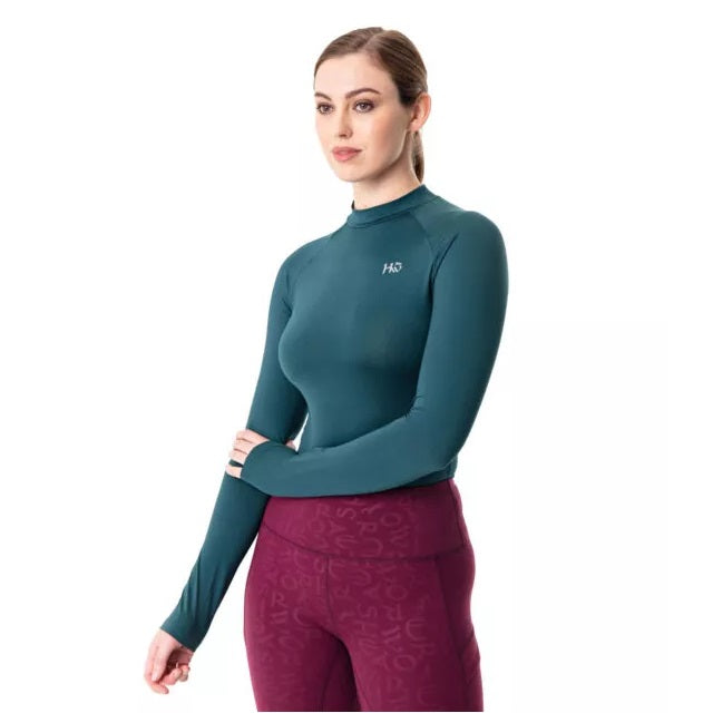 Chandail pour femmes à utiliser comme couche de base de Horseware Ireland. Fabriqué dans un matériel respirant qui aide à éloigner l'humidité de la peau. Couleur Galactic Teal.