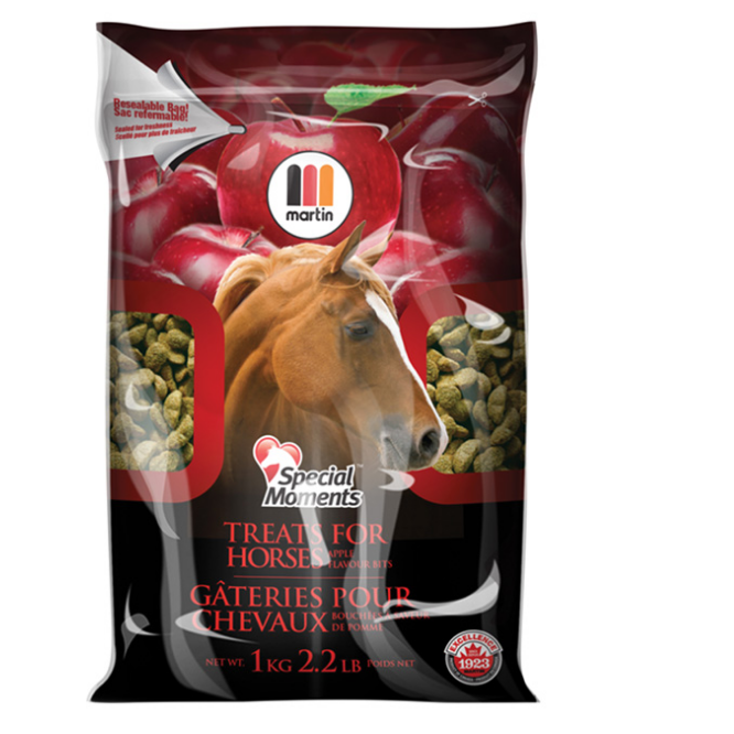 Gâteries pour chevaux Martin. Bouchées à saveur de pomme. 1kg.
