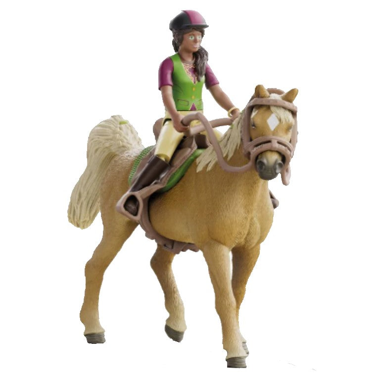 Sarah et Mystery sont rayonnantes. Sarah adore se promener avec sa jument arabe. Et Mystery, la jolie jument beige, ressent exactement la même chose.