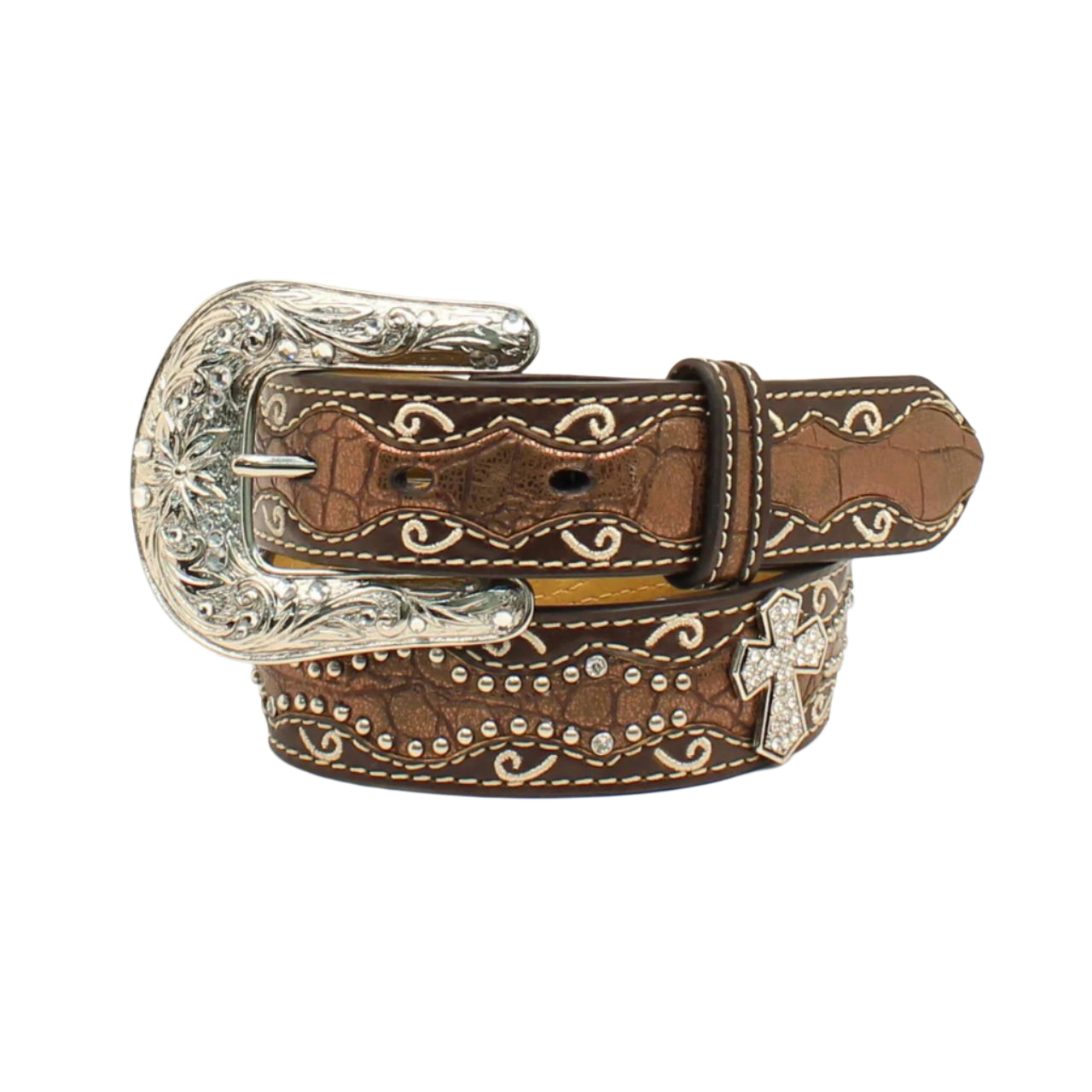 Ceinture Ariat pour enfant. avec motif peau de crocodile et conchos en croix.