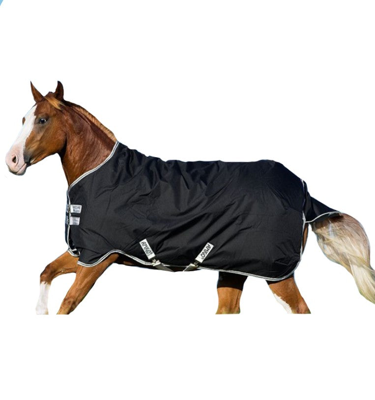 Couverture Stock Horse Turnout de Horseware Ireland. Isolation de 200g avec imperméabilité de 600D. Spécialement conçu pour les chevaux possédant un poitrail plus large. Offre également une protection UV et possède deux sursangles croisés à l'avant. Couleur noir et silver.