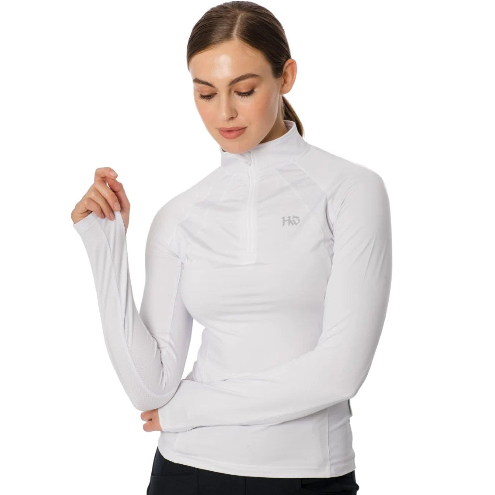Chandail à manches longues Horseware Aveen pour femmes. Fabriqué dans un matériel respirant et élastique qui éloigne l'humidité. Couleur blanc.