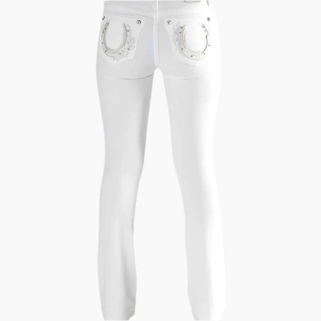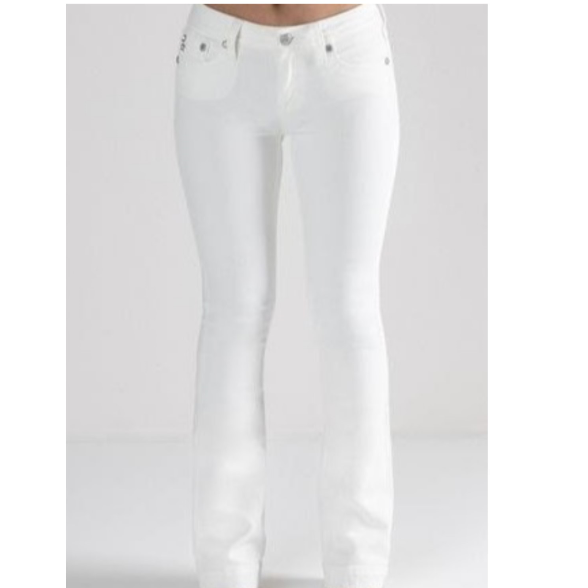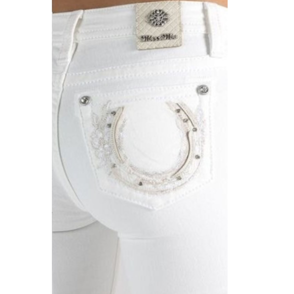 Jeans Miss Me Gilded Horseshoe pour femmes. Taille mi-haute. Jambe boot cut. 99% coton, 1% élastane.