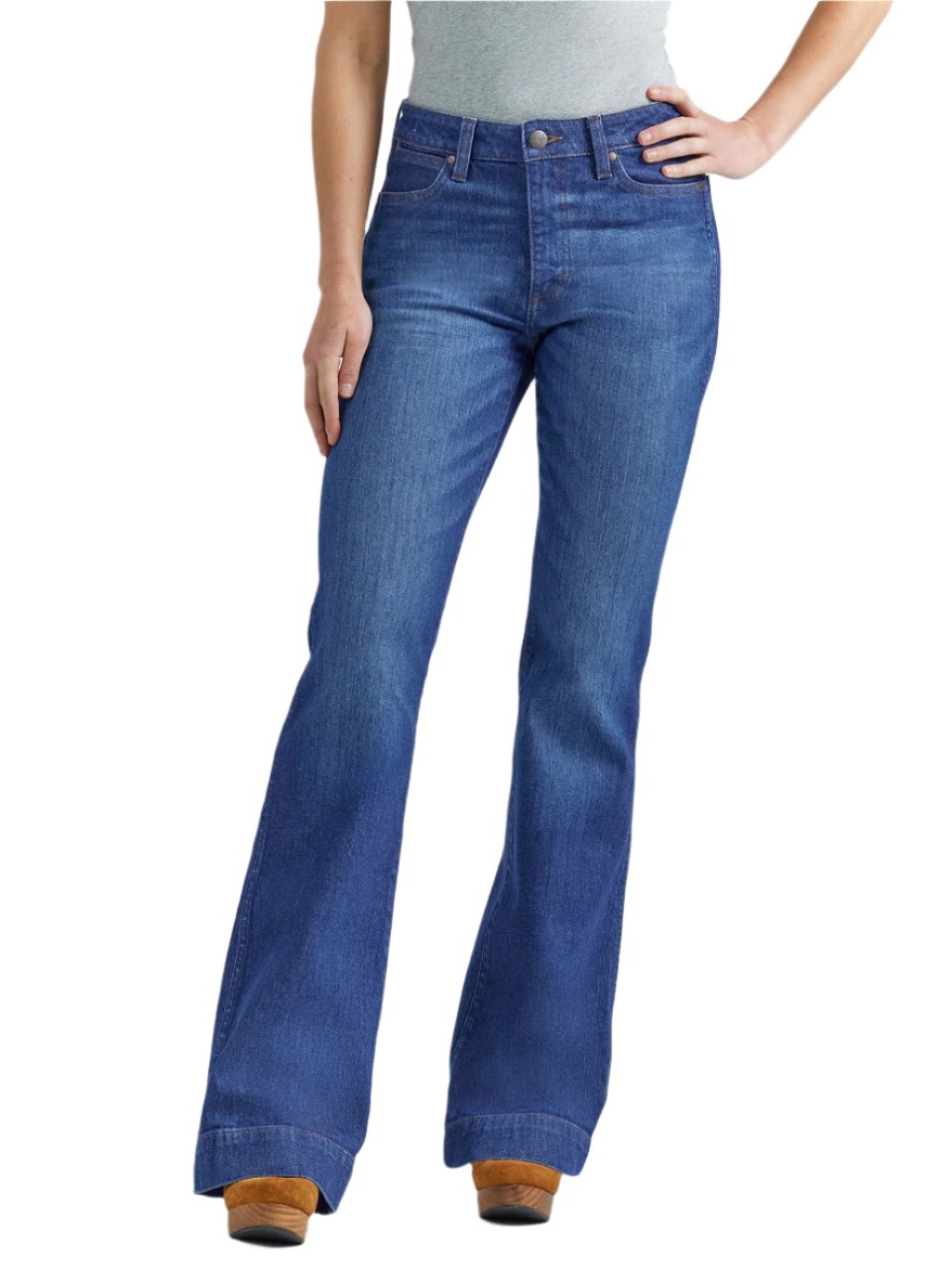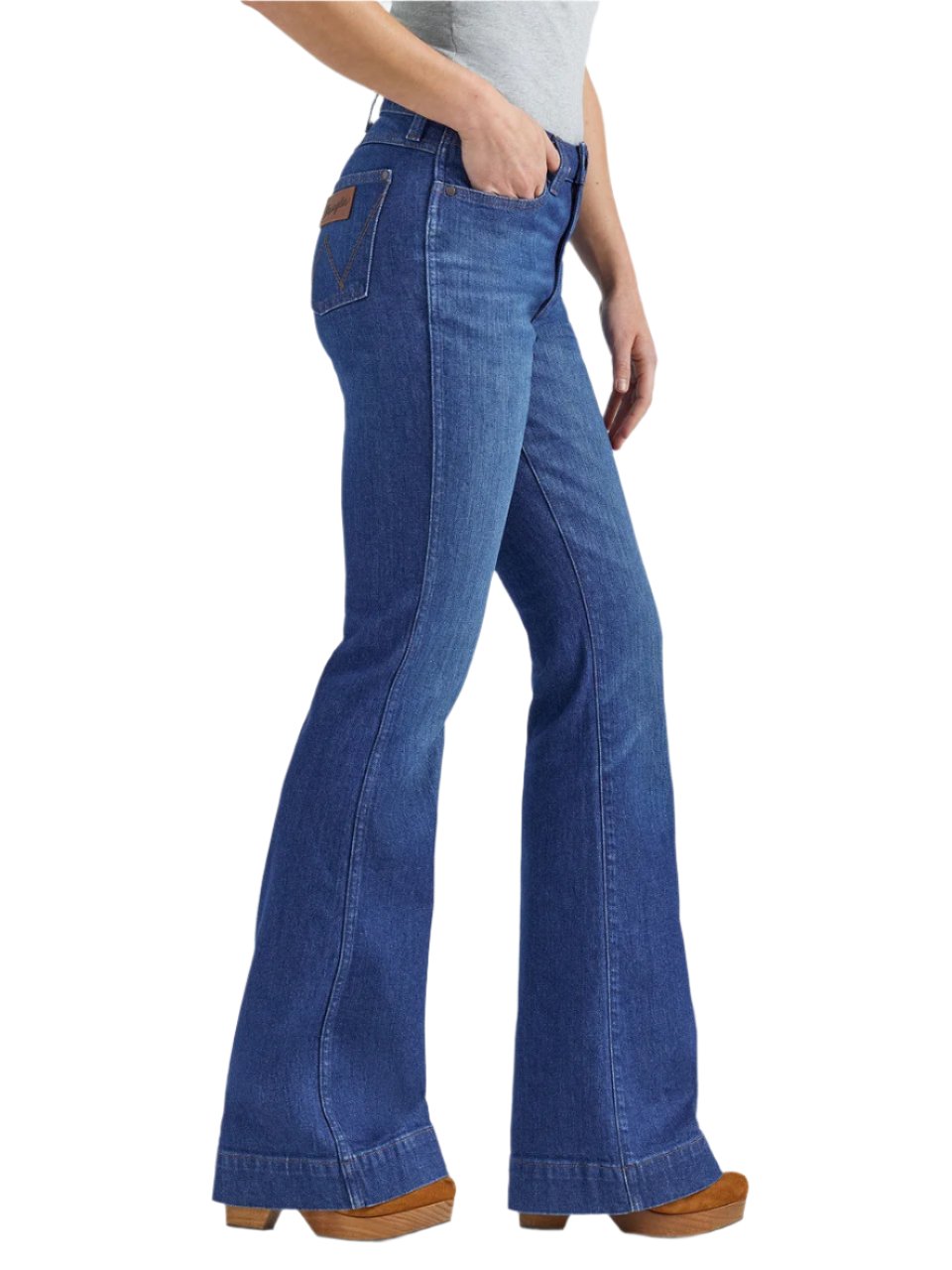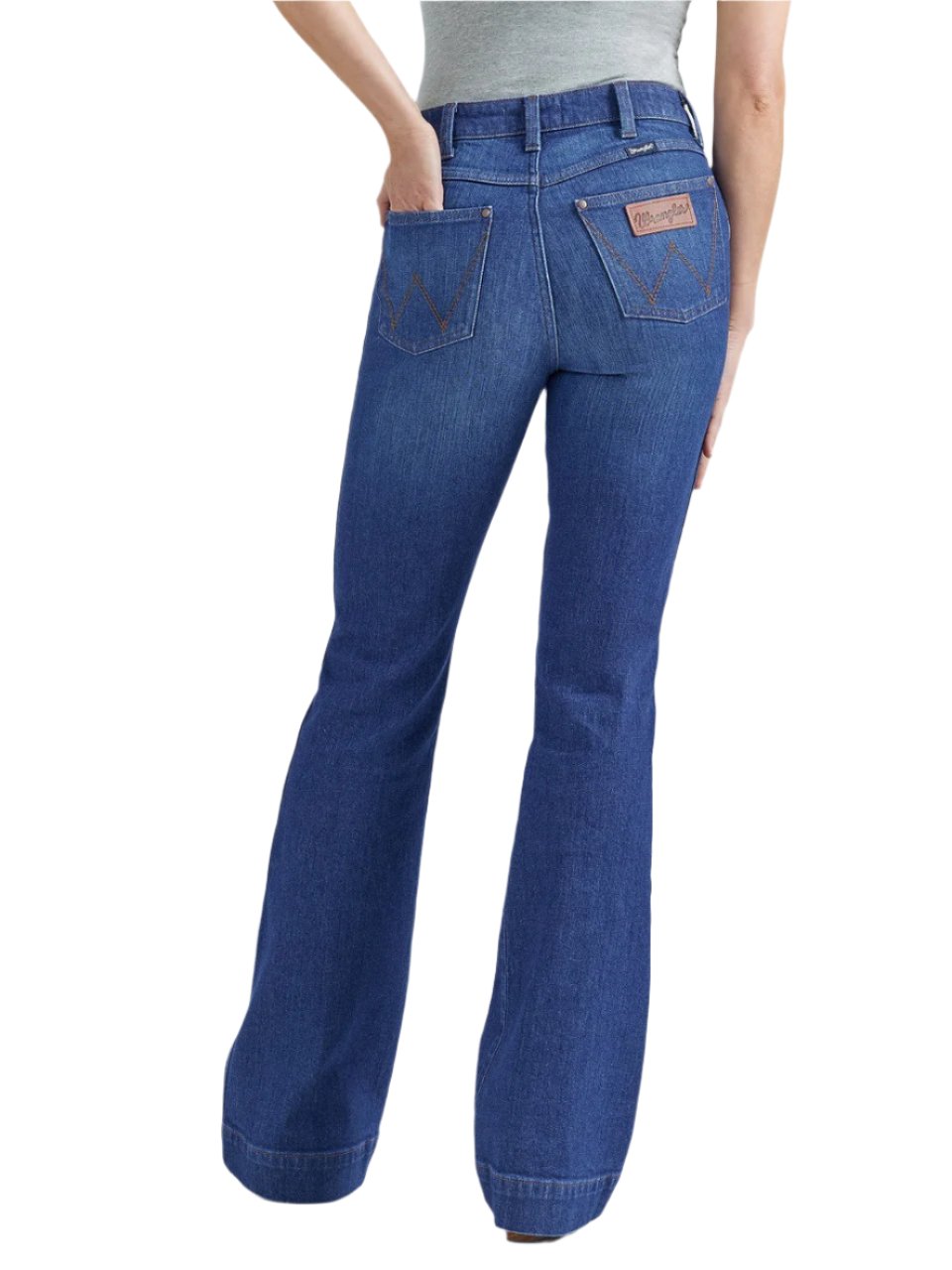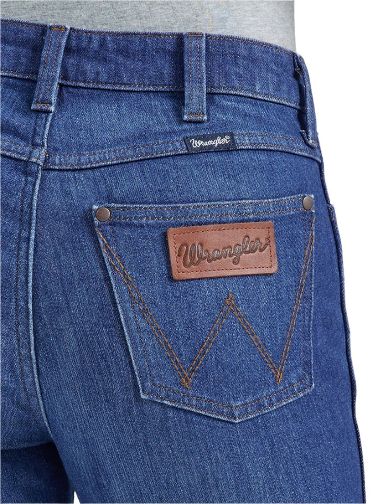 Jeans Wrangler Bailey Trouser pour femmes. Flatteur sous tous les angles,ce pantalon en denim est confectionné dans un mélange de coton avec juste une touche de stretch pour un confort tout au long de la journée. Ils présentent un style retro avec une silhouette taille haute, une coupe ajustée au niveau de la cuisse et une jambe évasée de 20,5".