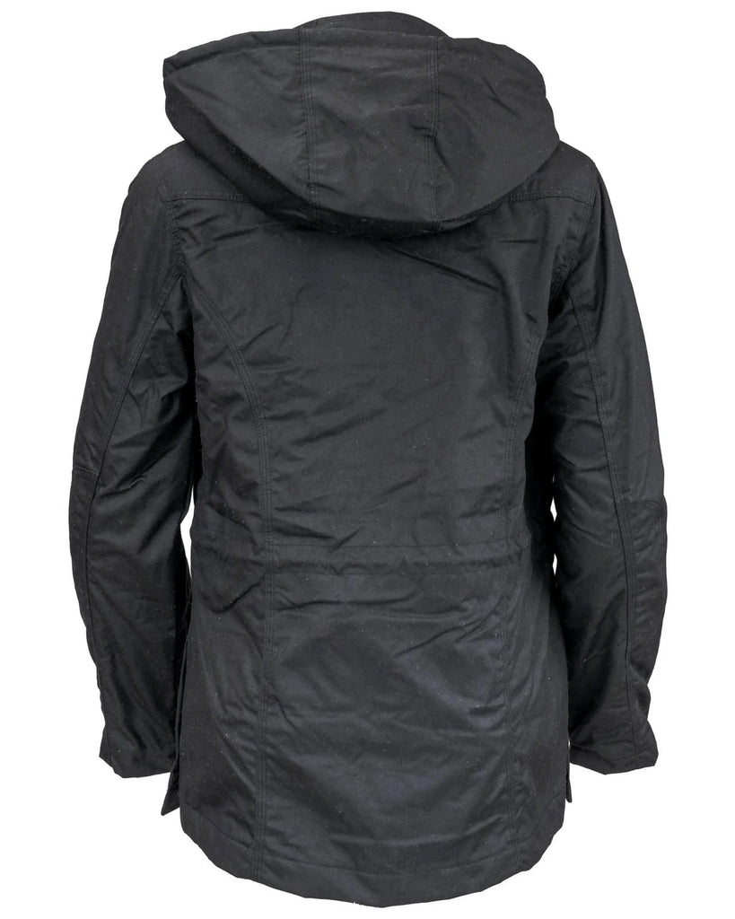 Manteau Outback Adelaide pour femmes. Le manteau Adelaide est un manteau en toile cirée doublé de polaire avec une taille à cordon de serrage et une capuche amovible.