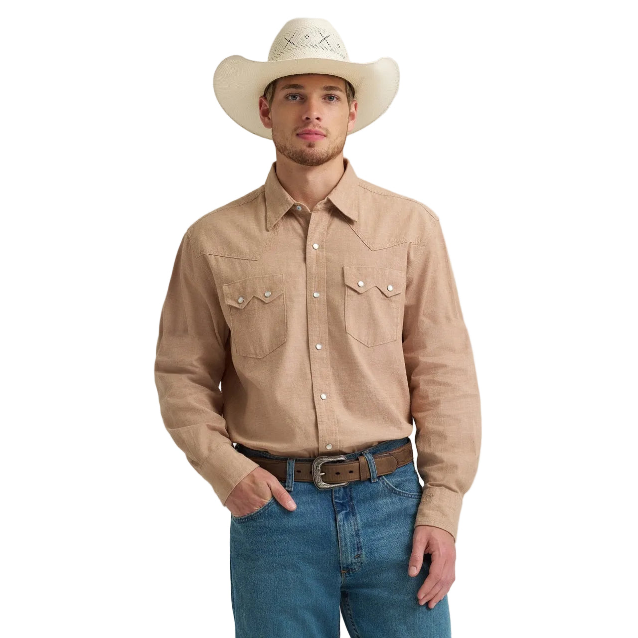 Inspirée par Cody Johnson lui-même, cette chemise western deviendra vite votre préférée. Confectionnée en coton doux et confortable, elle se porte en toute saison. Cette chemise à manches longues est dotée d'un col boutonné dissimulé pour une allure impeccable, d'empiècements simples devant et dos, de poches poitrine à rabat en dents de scie avec boutons-pression et de poignets biseautés ornés du logo signature de la star de la musique country, brodé comme une marque de fabrique. De plus, sa coupe classique est parfaite : ni trop serrée, ni trop ample.