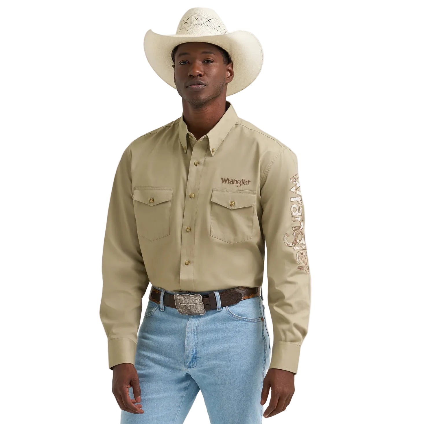 Confectionnée en coton 100 % premium, cette chemise Wrangler à manches longues pour homme offre un style western authentique et des détails pratiques. Son col italien et ses empiècements western traditionnels lui confèrent une silhouette classique, tandis que ses poches à rabat boutonnées permettent de ranger vos essentiels en toute sécurité. Sa couleur kaki s'accorde facilement avec toutes les tenues western, faisant de cette chemise un incontournable polyvalent, aussi bien pour le travail au ranch que pour un look décontracté.