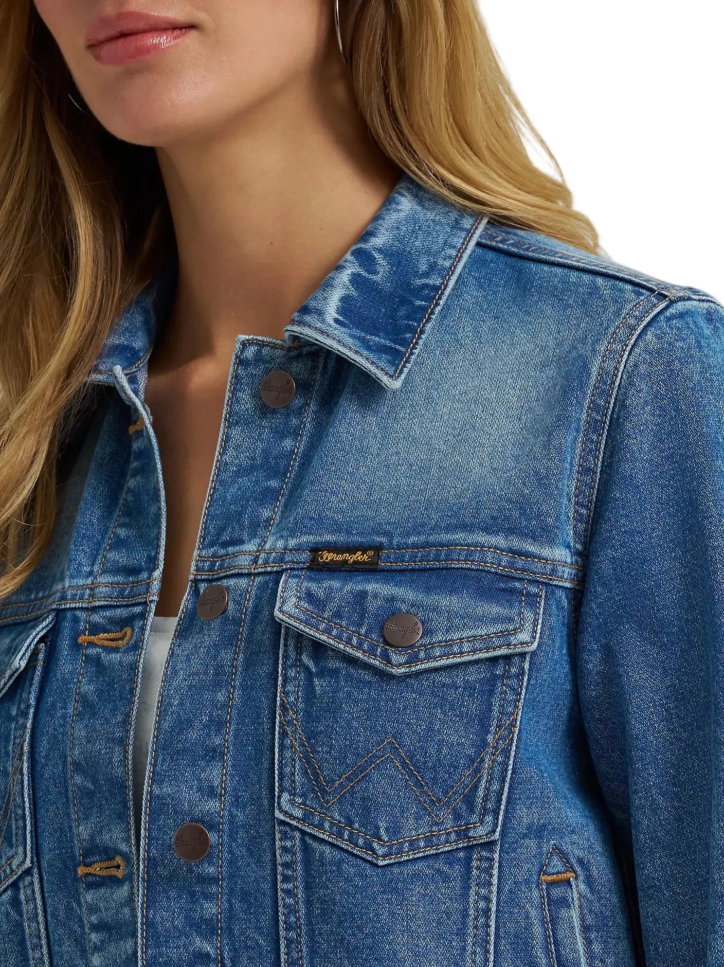 Aucune garde-robe n'est complète sans une veste en jean pour femme. Idéale pour les journées fraîches, cette version classique de la veste trucker est confectionnée en 100 % coton pour un confort optimal en toute saison. Elle arbore tous les détails emblématiques de la marque, notamment deux poches poitrine à rabat avec surpiqûre « W », deux poches latérales et des fermetures métalliques griffées pour faciliter la superposition.