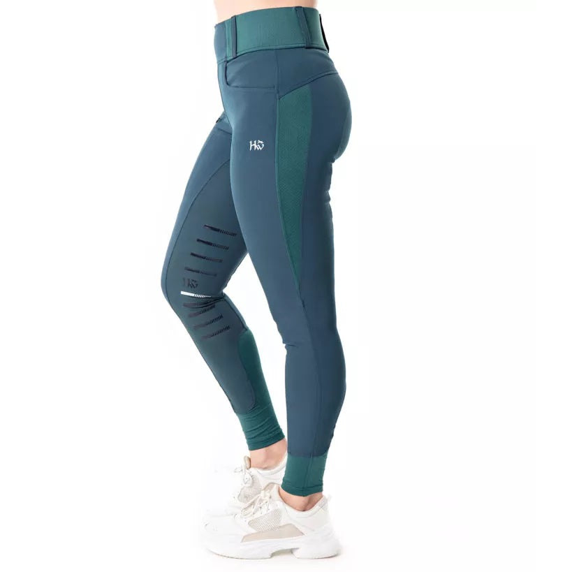 Pantalon Horseware Ireland Meryl pour femmes. Fabriqué dans un matériel élastique et respirant qui protège des rayons UV. Ligne de silicone à l'intérieur des cuisses pour une meilleure adhérence. Taille haute confortable. Sans fermeture éclaire ni bouton à l'avant. Couleur Galactic Teal.