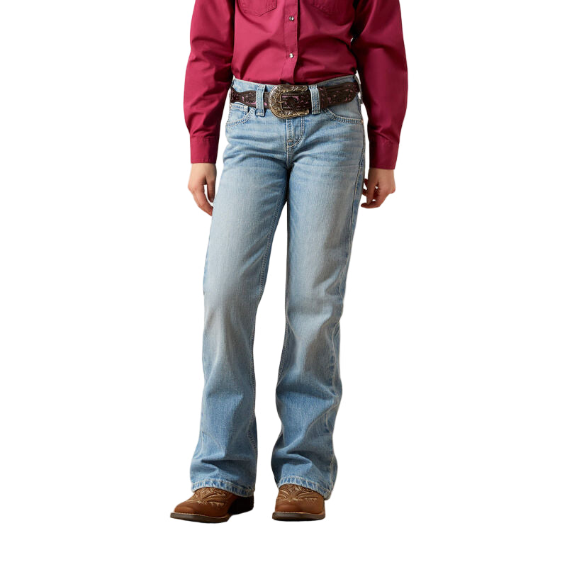 Tout comme celui de maman, le jean bootcut Ariat Aisha pour fillettes est un indispensable du quotidien. Confortable et résistant, il est aussi utile en classe qu'à la ferme.