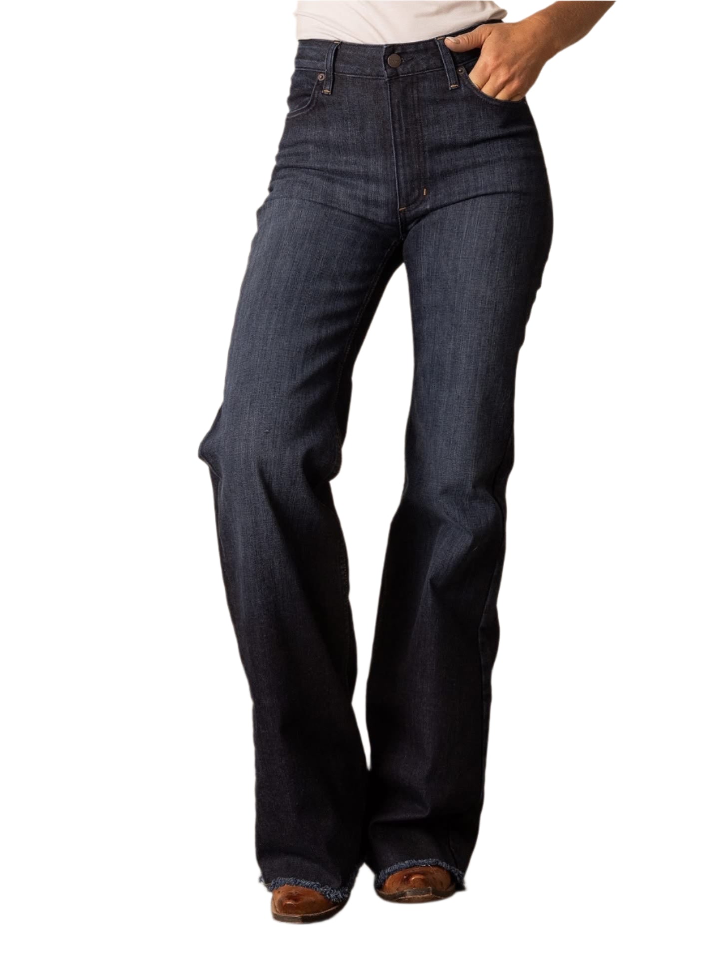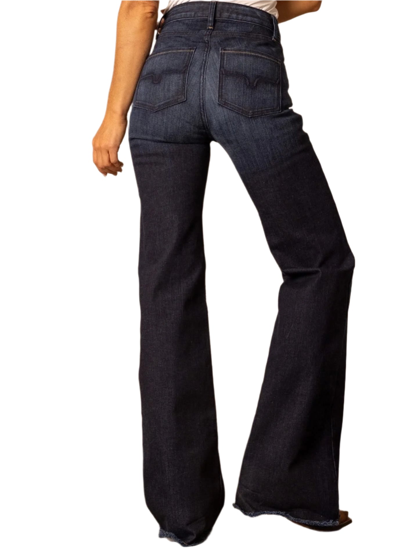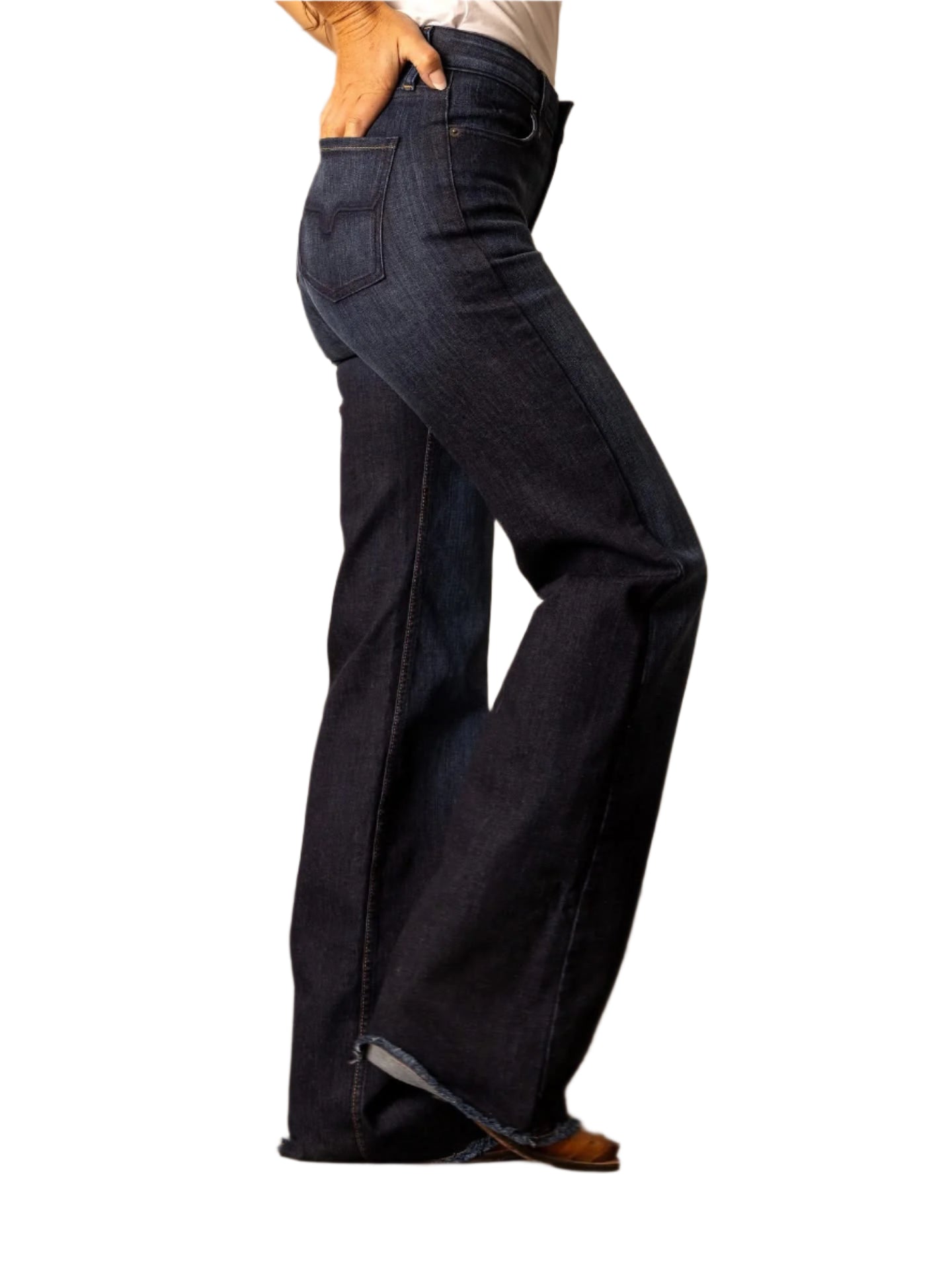 Jeans Kimes Ranch Olivia pour femmes. Un jean à taille haute avec jambe large et ourlet brut, l'Olivia est le jean parfait pour toutes les occasions. Fabriqué à partir d'un denim tri-mélange innovant, ce jean léger est rehaussé du logo Kimes Ranch emblématique Longhorn sur les deux poches arrière.