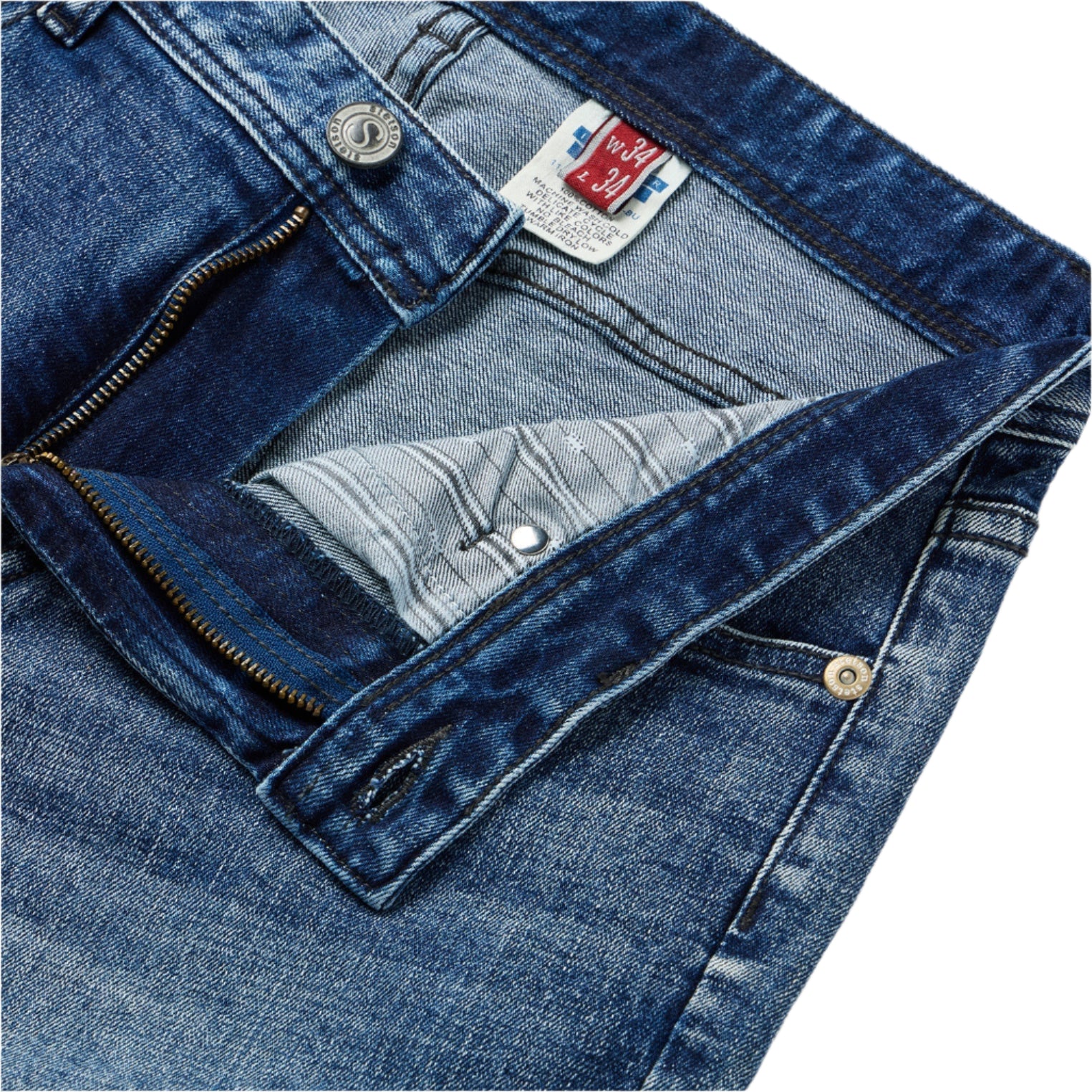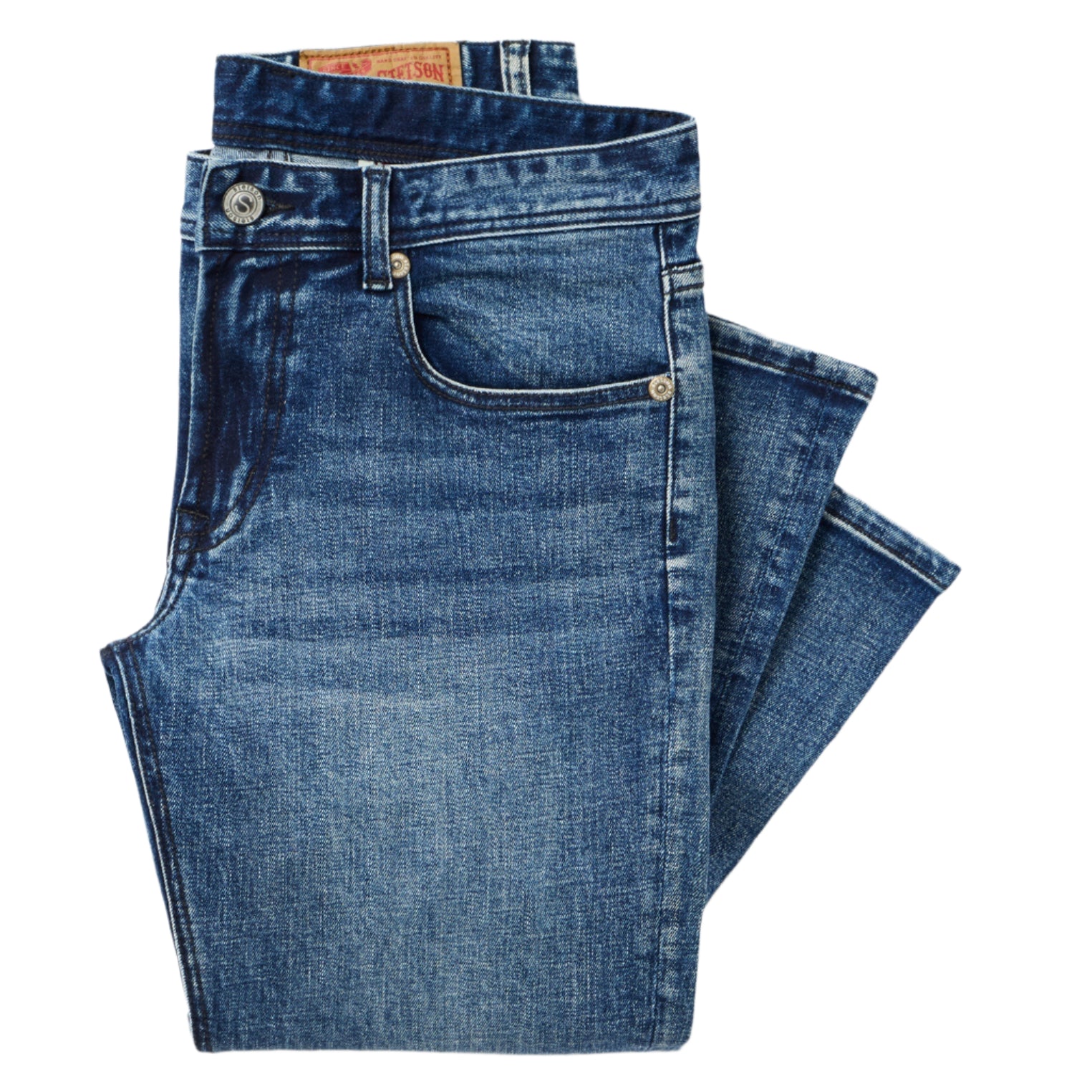 Le jean 1015 Rocker Fit est confectionné en denim de coton de haute qualité, légèrement extensible pour une liberté de mouvement optimale, dans un délavage bleu moyen. Il présente une taille basse, une cuisse légèrement ajustée et une ouverture bootcut pour une silhouette élégante. Il est également doté de surpiqûres gris foncé, de poches arrière à empiècements avec décoration abstraite, ainsi que de boutons, rivets et fermeture éclair siglés Stetson. Des finitions soignées, comme le ponçage à la main et les détails moustaches, complètent ce jean pour un look parfait, inspiré de la vie de tous les jours.