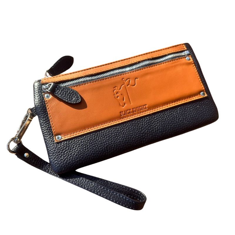 Étui Black Knight en cuir véritable pour cavalier. Le tout nouveau modèle RW-X comprend maintenant des emplacements pour cartes et un rabat de boucle de ceinture redessiné pour plus de stabilité.