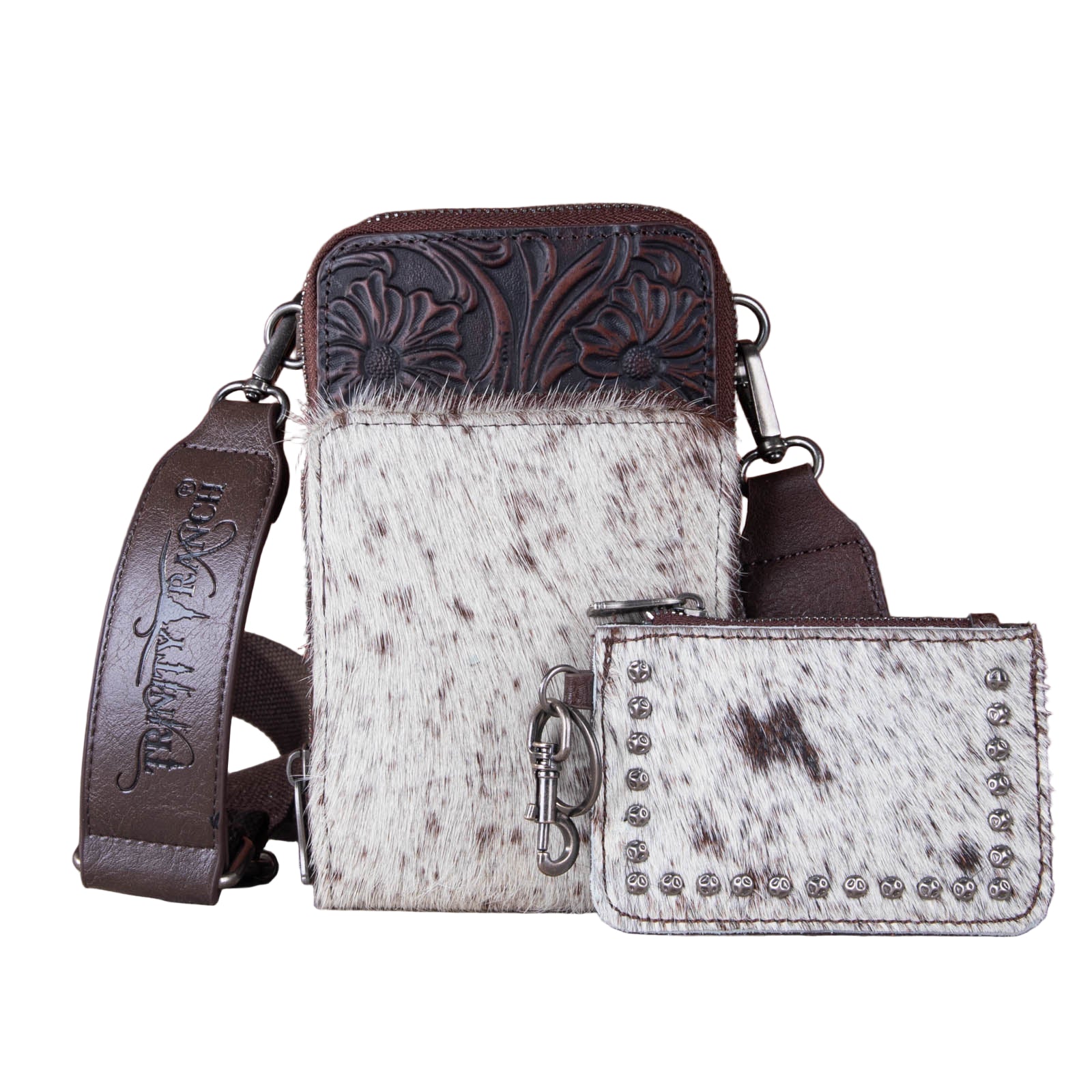 Ce sac à bandoulière Trinity Ranch partiellement en cuir véritable, comprend :