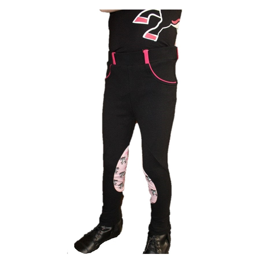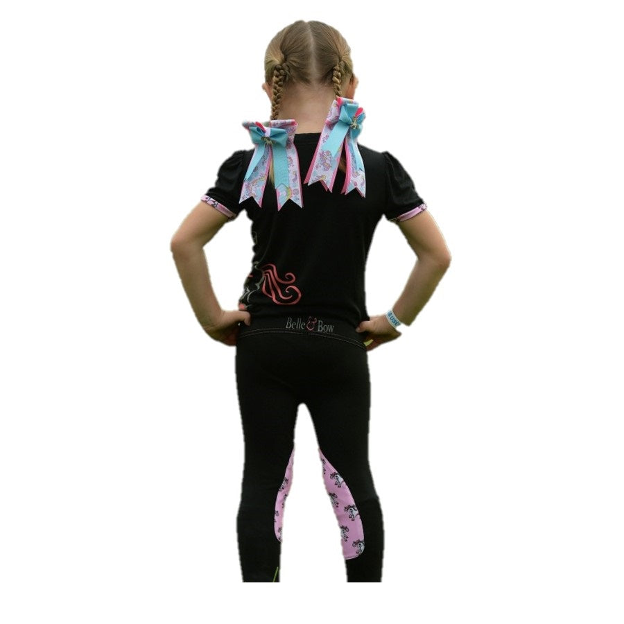 Pantalon d'équitation Belle & Bow pour fillettes. Élastiques au niveau des pieds pour mettre sous les bottes.