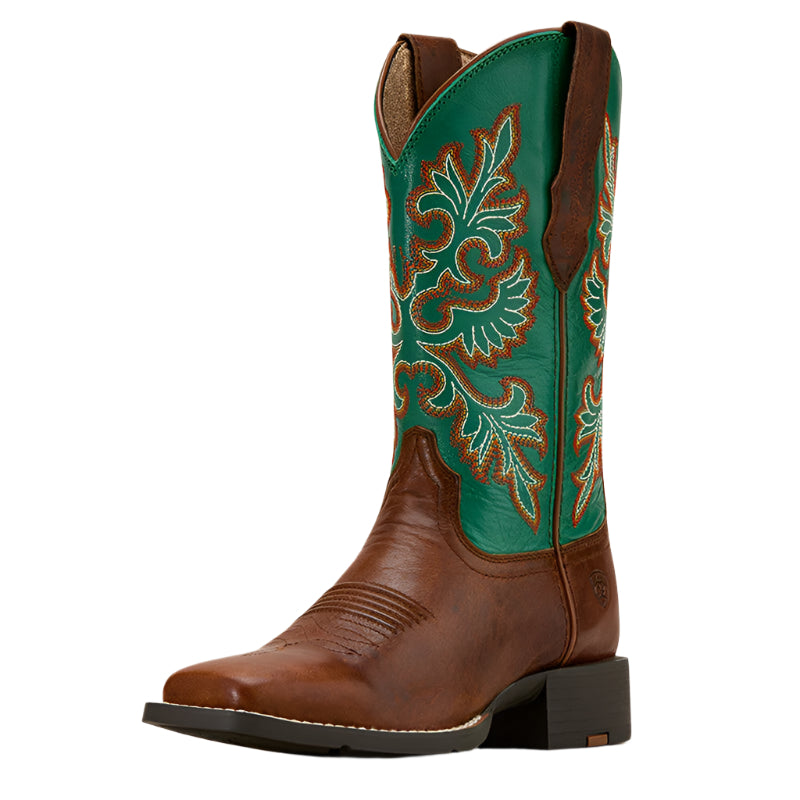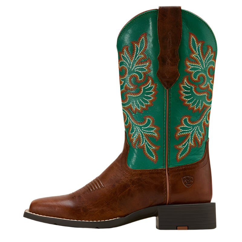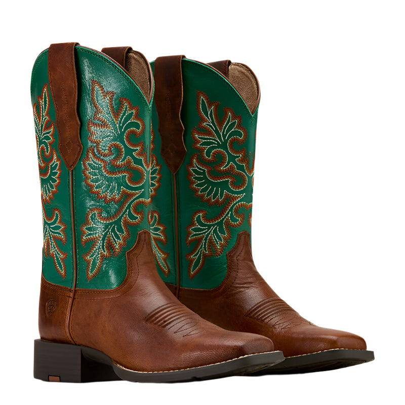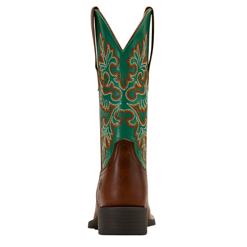Fabriqué en cuir pleine fleur, ces bottes Ariat Round Up Wide Square Toe Stretchfit comporte des panneaux extensibles secrets qui lui permettent de s'enfiler plus facilement et de s'adapter à une large gamme de mollets.