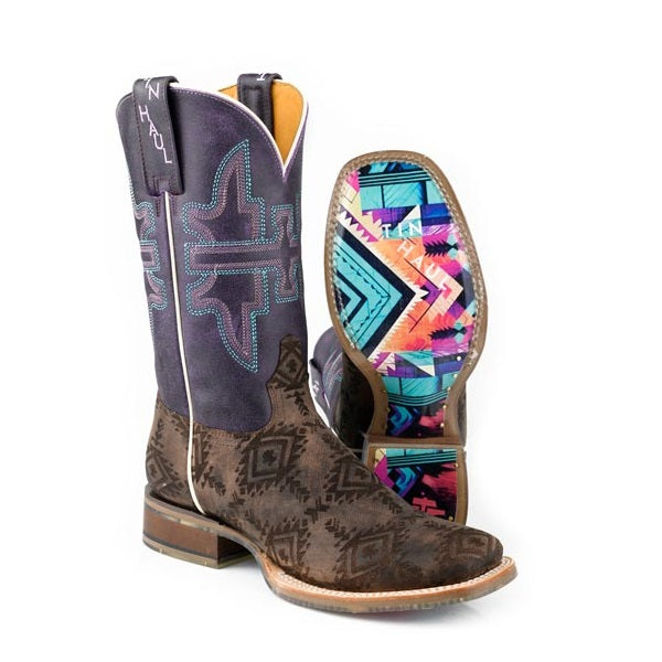 Bottes Tin Haul Sizzling Aztec pour femme. Fabriquées à la main, les bottes Tin Haul sont conçues pour les cowgirls modernes et élégantes. Leurs couleurs exceptionnelles et leur semelle extérieure unique ne manqueront pas de faire sensation. Affirmez votre style avec une paire de bottes Tin Haul audacieuses.