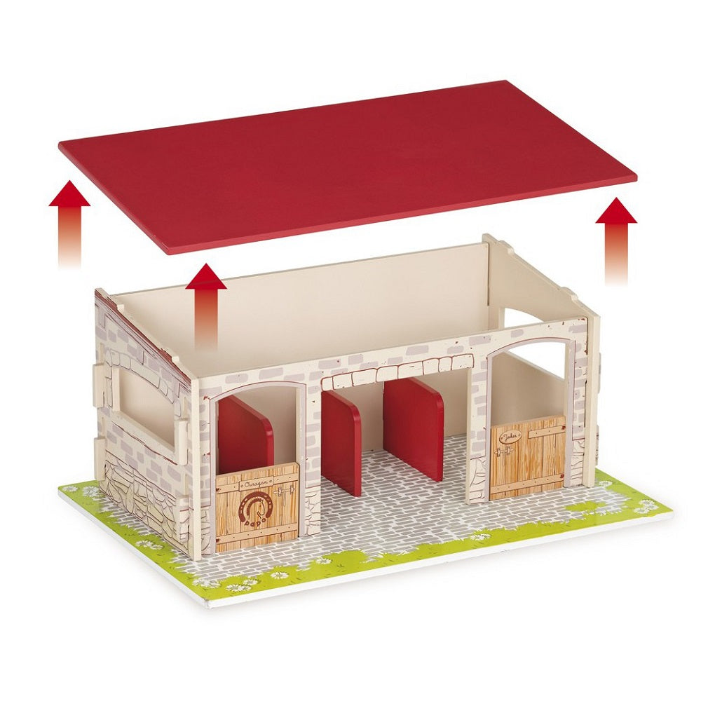 Le box à chevaux PAPO peut accueillir 4 pensionnaires, voire un peu plus si des poulains rejoignent leur maman. Ils pourront sy abriter pendant la nuit. Le box à chevaux est doté d'un toit amovible pour faciliter la jouabilité. Figurines Papo non-incluses.