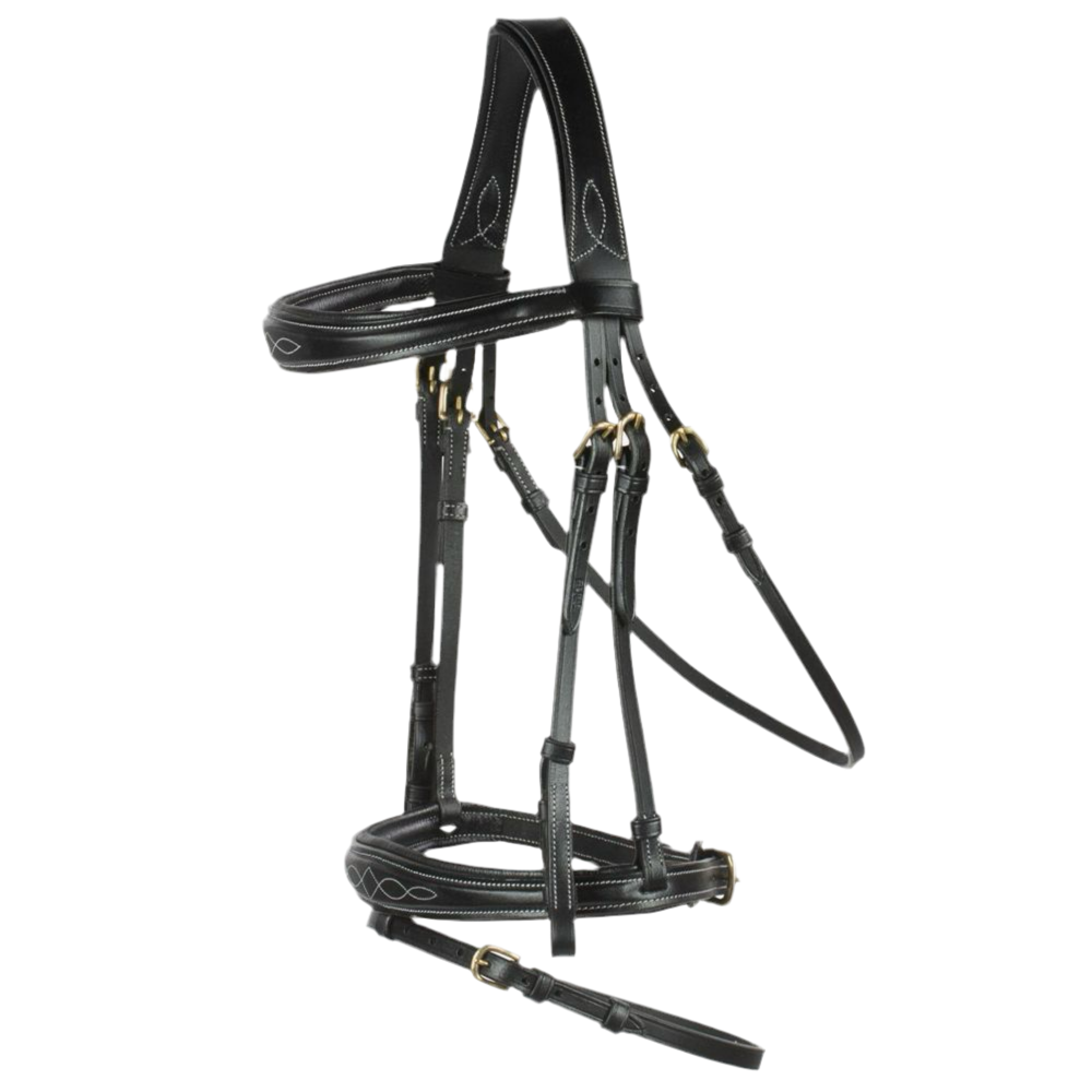 La bride Horze Sion n'est pas seulement splendide, elle est également extrêmement confortable pour votre cheval. Cet élégante bride présente des coutures décoratives au niveau de la muserolle et du frontal. Le doux matelassage sur toute la surface est confortable sur la tête de votre cheval. Les rênes caoutchoutées vous assurent une adhérence permanente. Comme touche finale parfaite, une belle bouclerie en laiton. Couleur: noir.