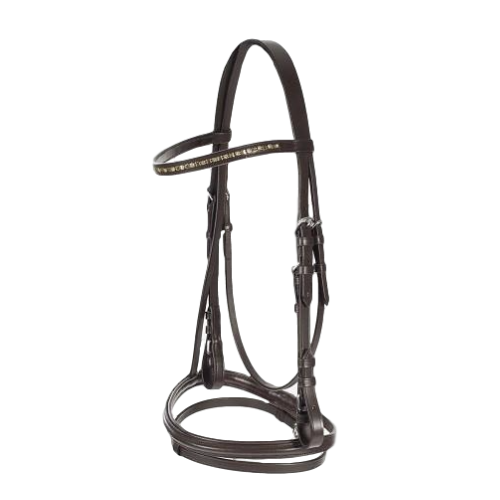 Ensemble bride et rênes Weston Spirit. Bride en cuir de qualité. Rênes fines en caoutchouc.