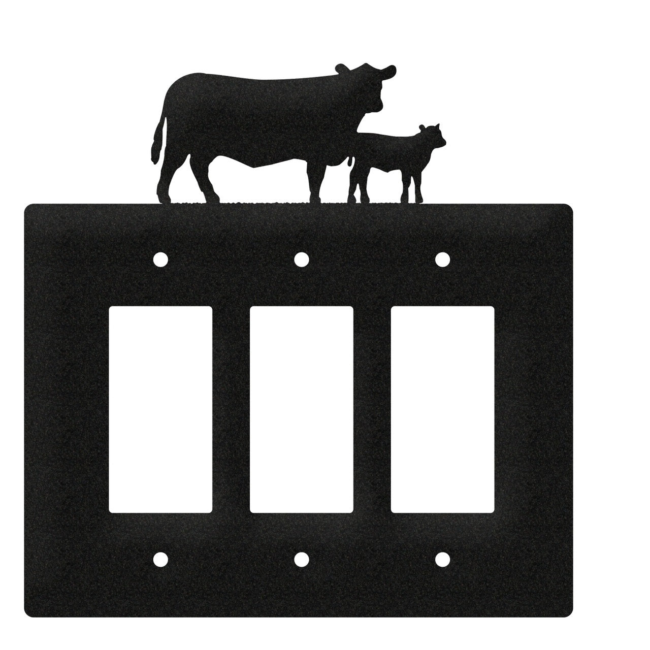 Cache-interrupteurs Vache et veau un métal à trois prises.