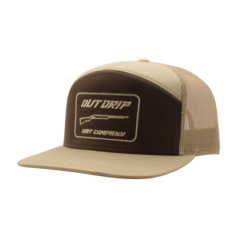 Casquette Outdrip Hat Co. Modèle Hi-Pro Hat. Couronne de 3.5". Filet en maille à l'arrière. Beige.