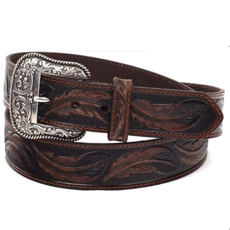 Ceinture en cuir Ariat. Plumes embossé. Unisexe.