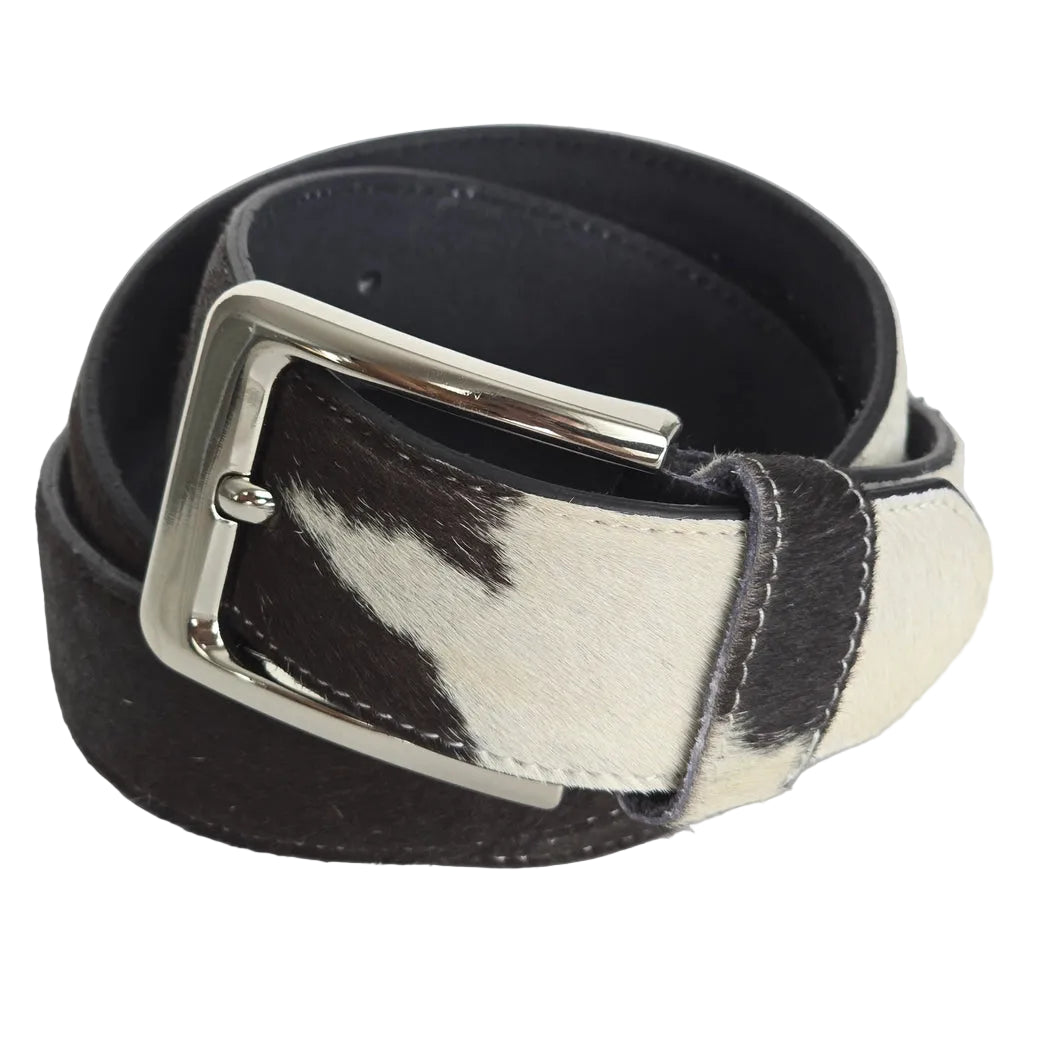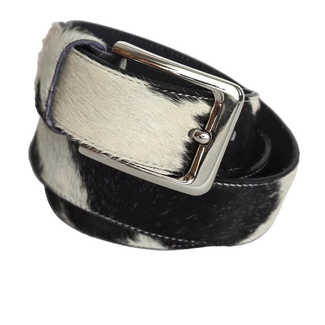 Couleur assortie. Comme il s'agit de véritable poil de vache, chaque ceinture est unique et différera de la photo. Le poil de vache s'usera dans des conditions normales, particulièrement aux sections sujettes aux frottements.