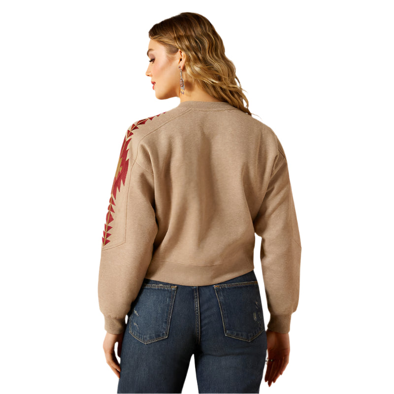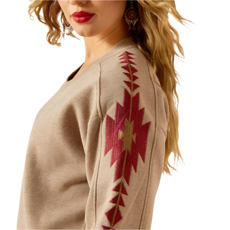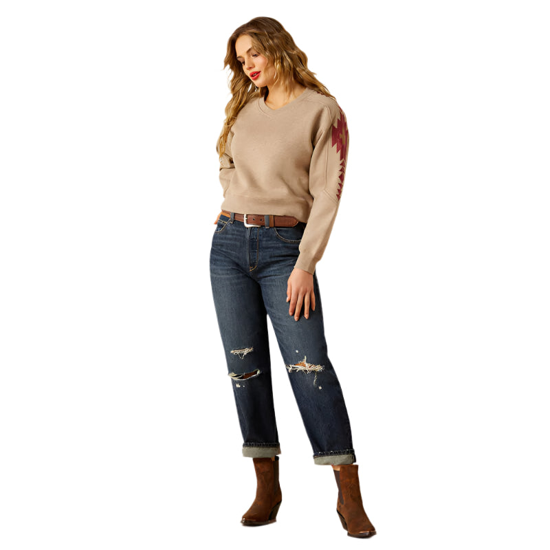 Ce chandail doux et confortable rehaussera même les tenues les plus décontractées. Avec son col en V flatteur et ses détails sud-ouest sur les manches, il fait sensation sans effort.