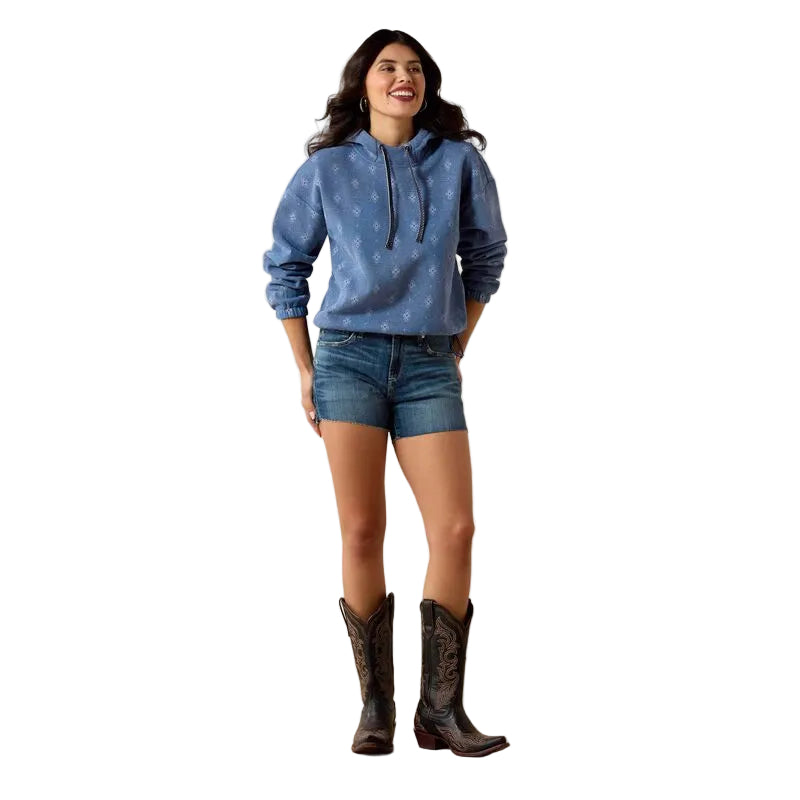 Chandail kangourou Ariat Essential pour femmes. Le cordon de serrage à la taille crée une silhouette flatteuse, tandis que l'imprimé western lui confère une touche de style.