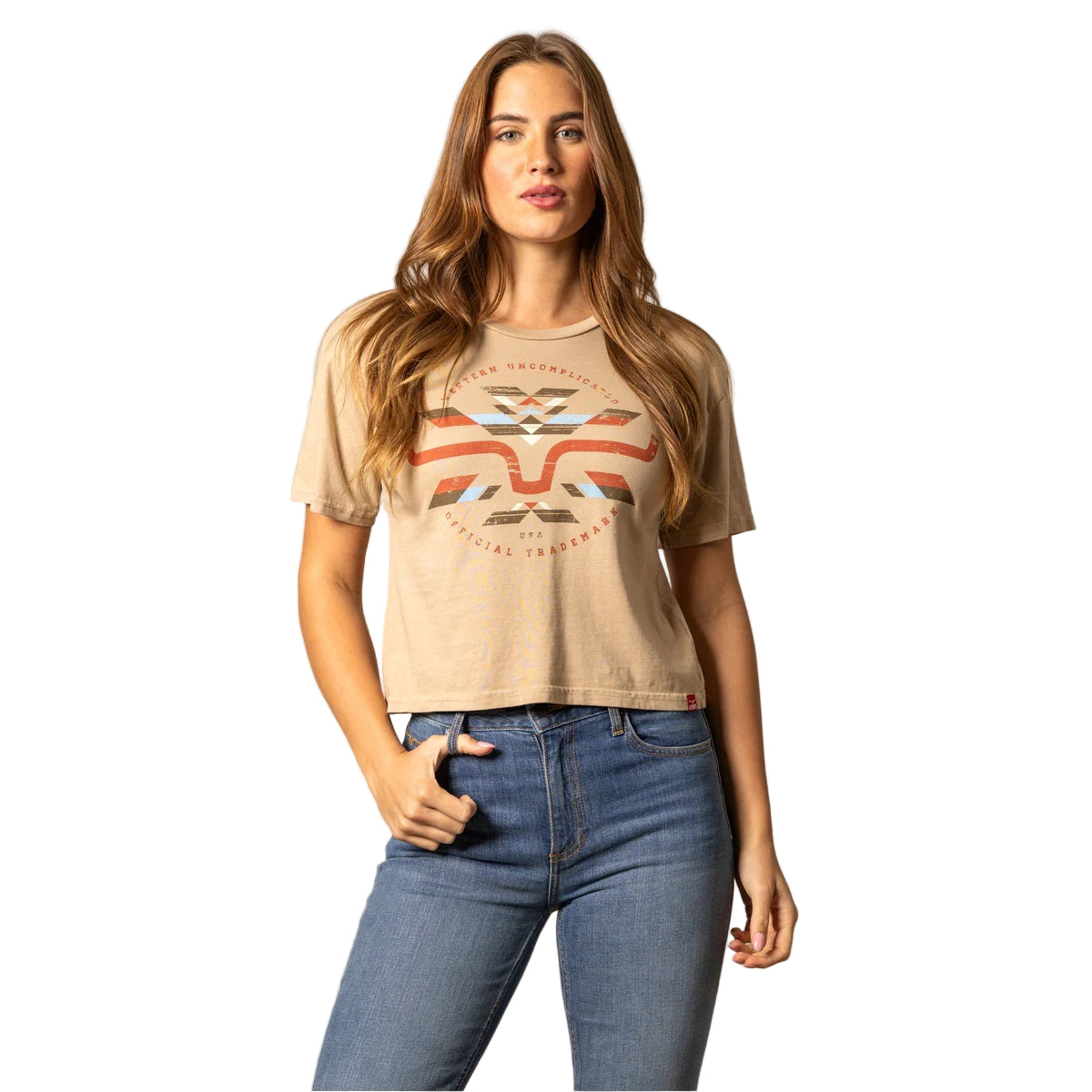Le t-shirt court Abiquiu allie un style cowgirl moderne à des motifs western audacieux. Arborant un motif géométrique sur la poitrine, ce t-shirt est confectionné en 100 % coton doux pour un confort optimal tout au long de la journée.