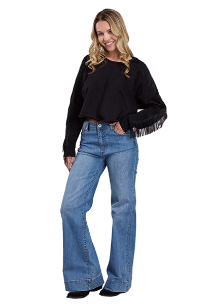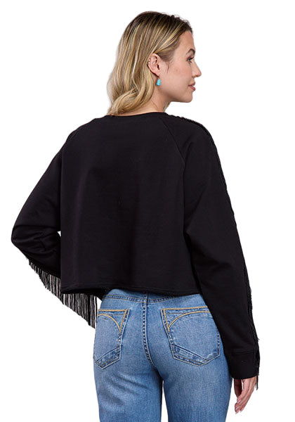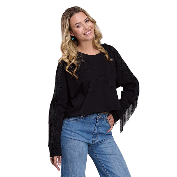 Chandail Roper en polaire de coton à manches longues et franges pour femmes.