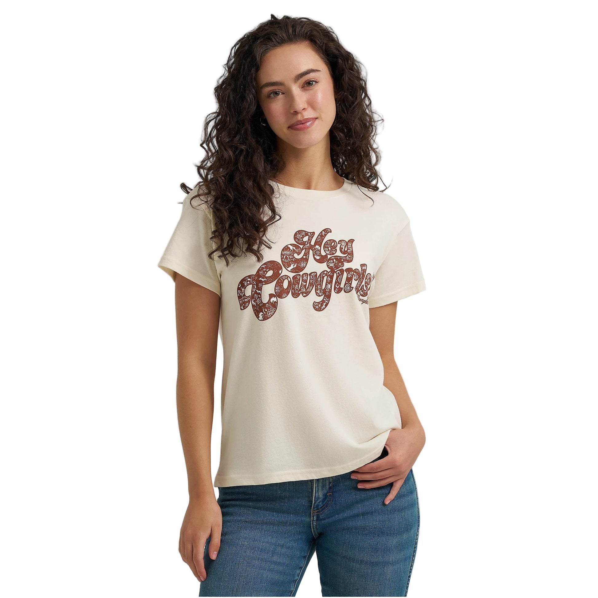 Chandail à manches courtes Wrangler Heyo pour femmes. Coupe régulière, ni trop ajustée, ni trop lousse.
