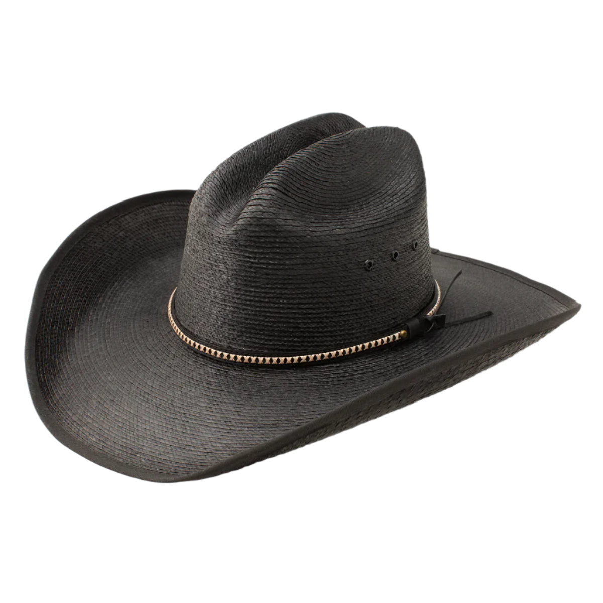 Le chapeau de cowboy Asphalt Cowboy de Resistol fait partie de la collection Jason Aldean. Ce chapeau en feuilles de palmier est doté d'une couronne inclinée de 3"x 4", d'un bord de 4 1/8" et d'un bandeau anti-transpiration en cuir pour un confort optimal La bande tissée multicolore apporte la touche finale à ce modèle incontournable.