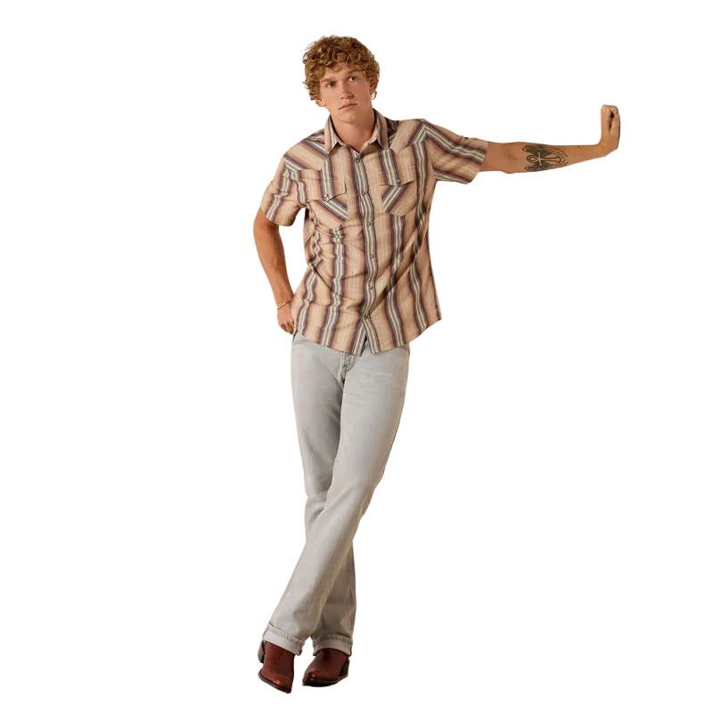Chemise à manches courtes Ariat Retro Haver Fitted pour homme. Les chemises rétro de Ariat rendent hommage à l'héritage western avec leurs boutons-pression nacrés et leur style unique. Confortables et polyvalentes, elles vous accompagneront partout.